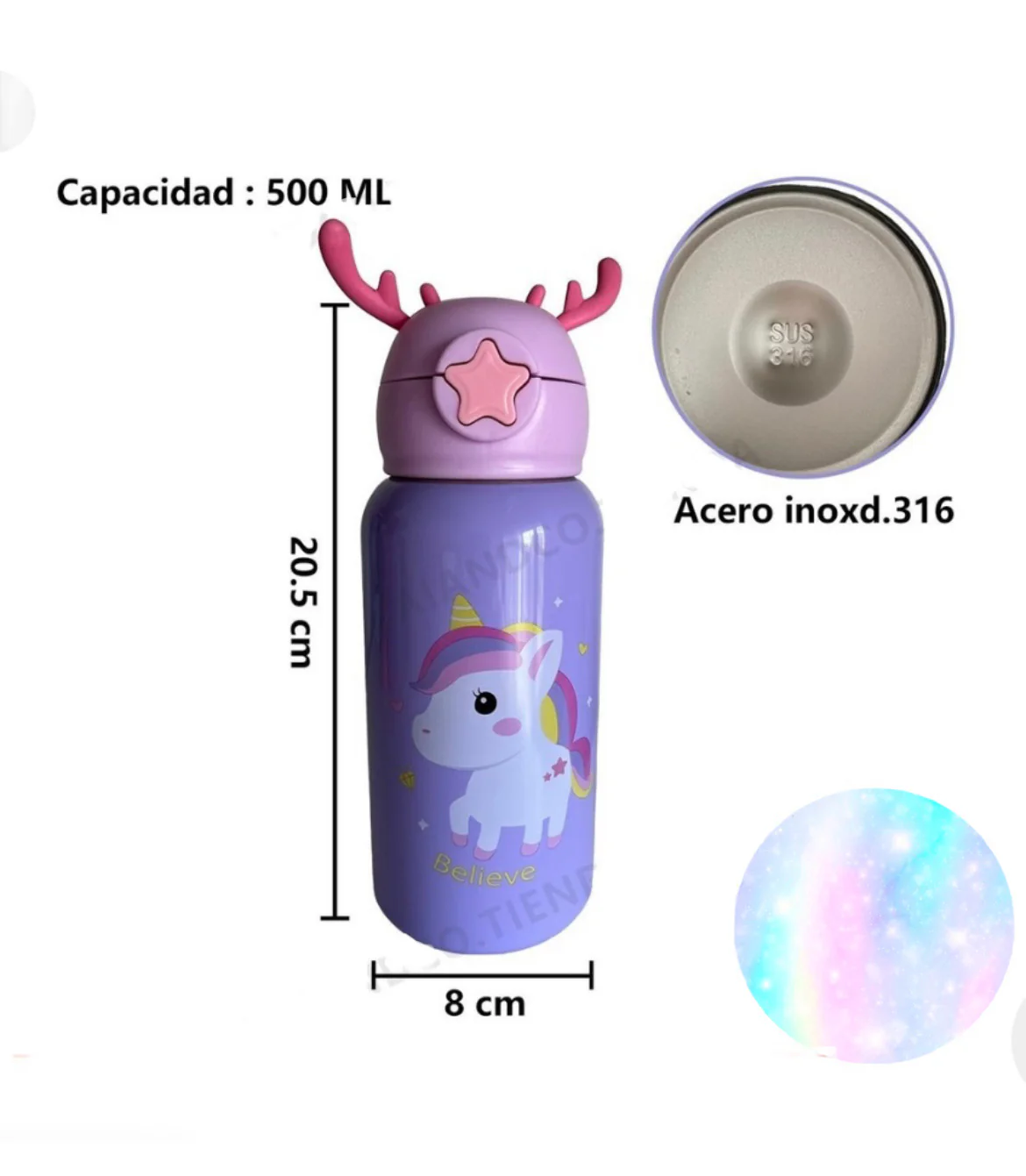 Botella térmica Acero Inoxidable con sorbete y funda Coneja 500 ml