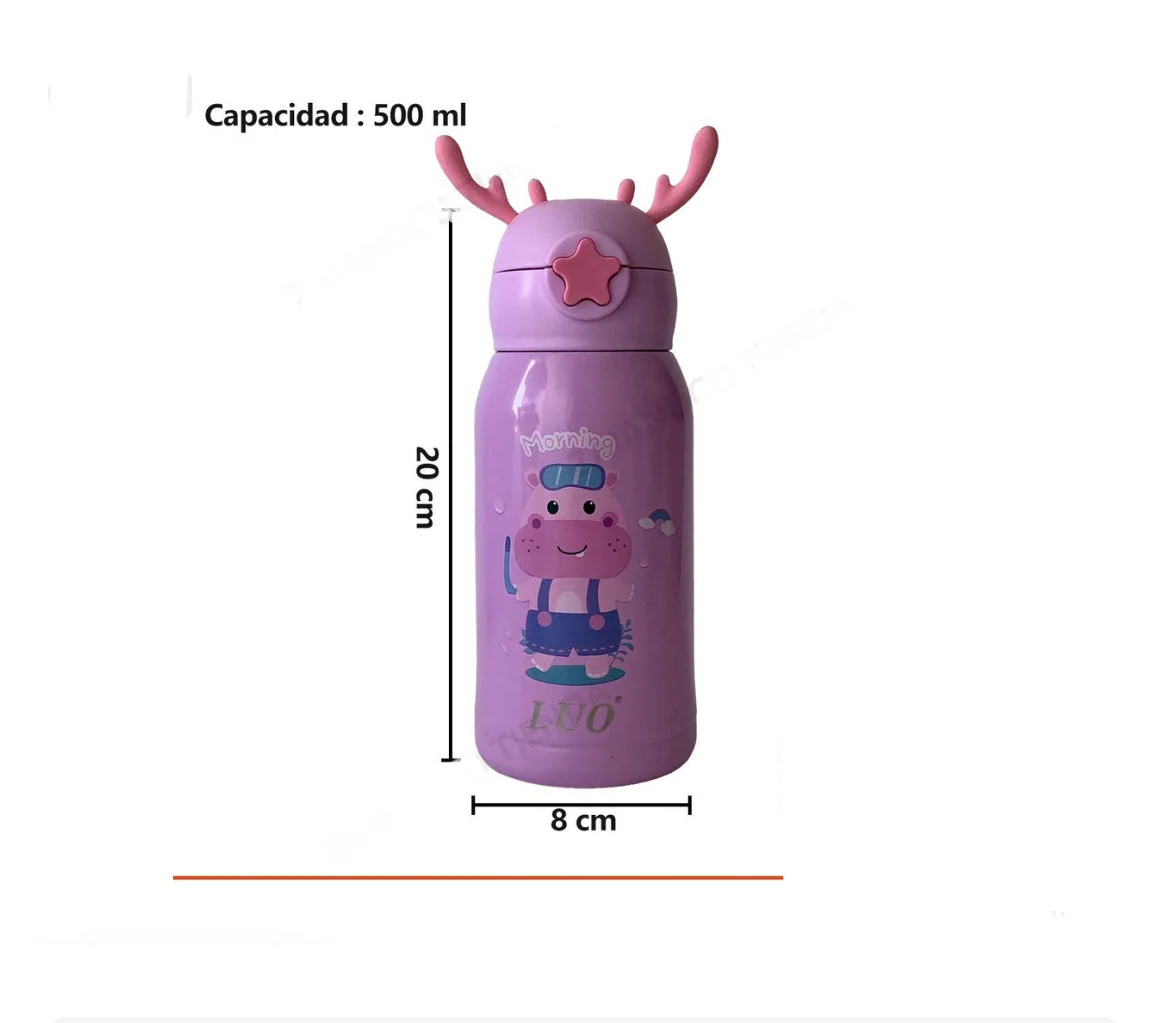 Botella térmica Acero Inoxidable con sorbete y funda Hipopótamo 500 ml