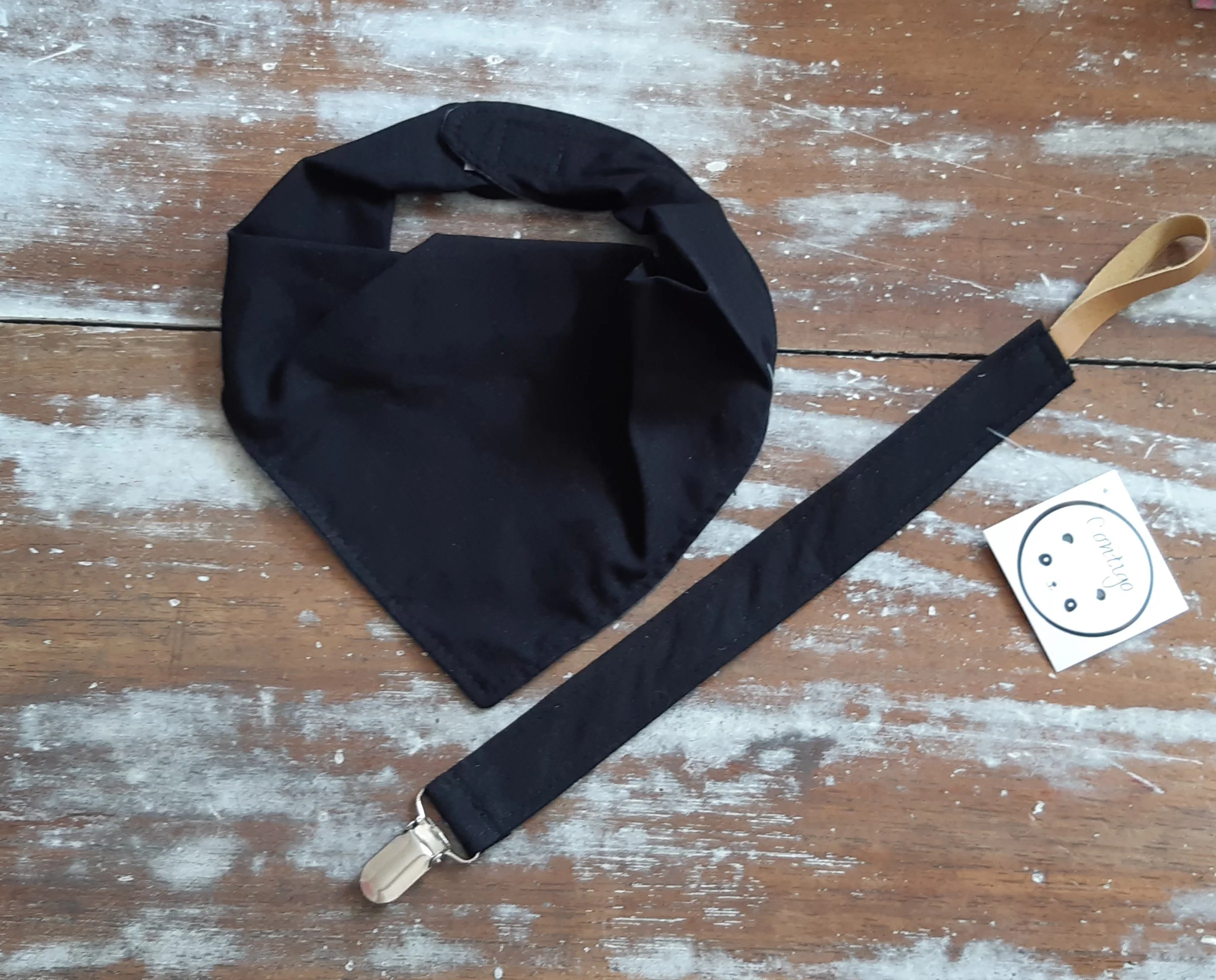 Set de Babero bandana ( algodón doble ) y porta-chupetes