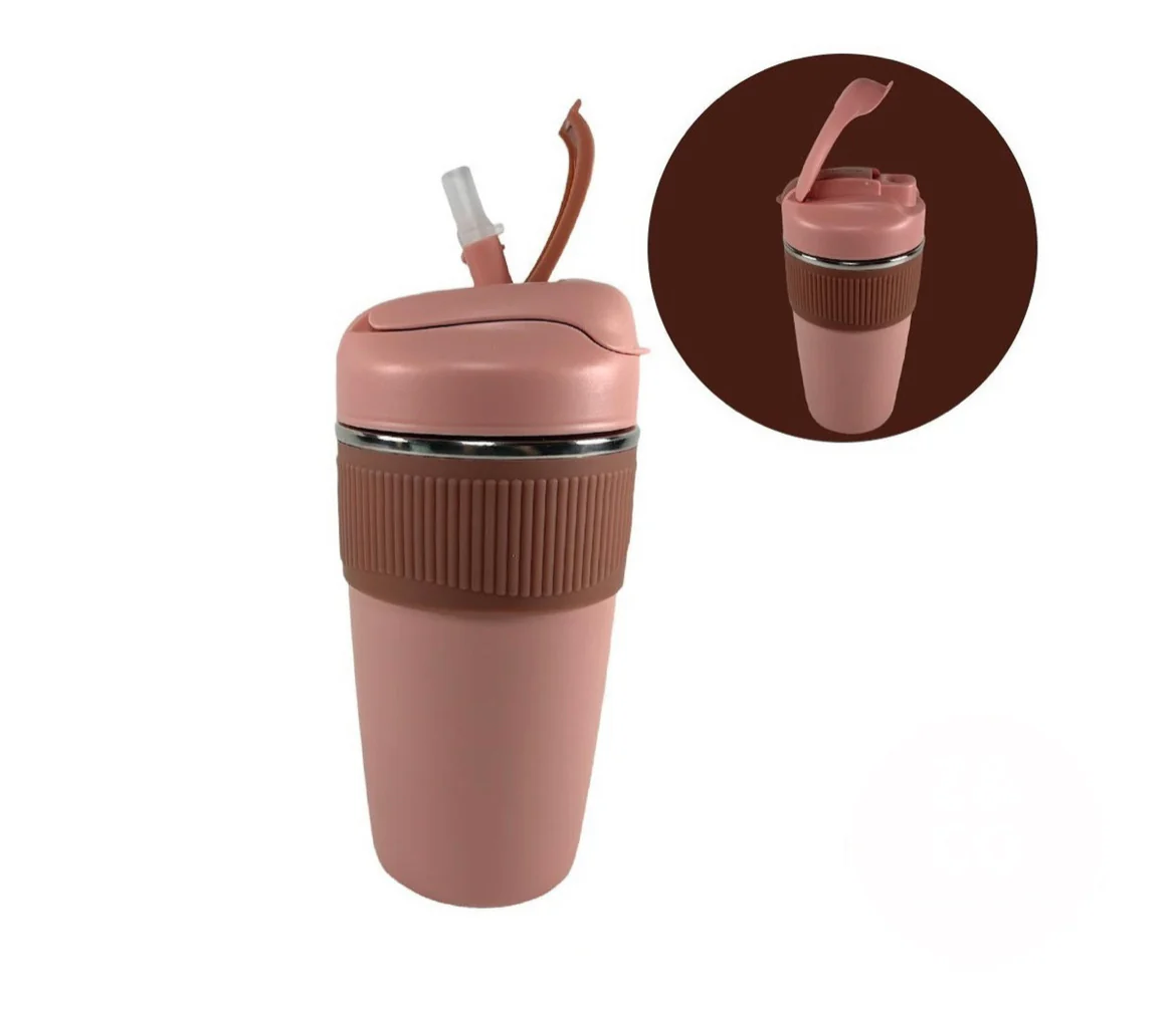 Vaso térmica Acero Inoxidable con sorbete Blanco & Rosa 460 ml
