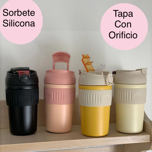Vaso térmica Acero Inoxidable con sorbete Amarillo 400 ml