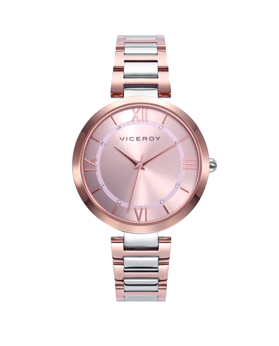 Reloj Acero Ip Rosa Brazalete Sra Va