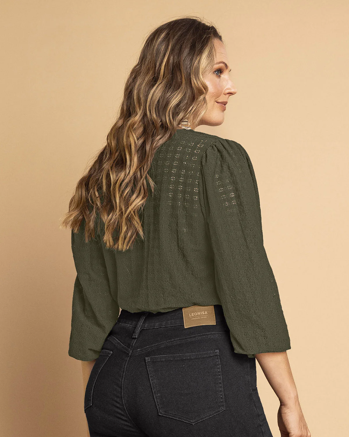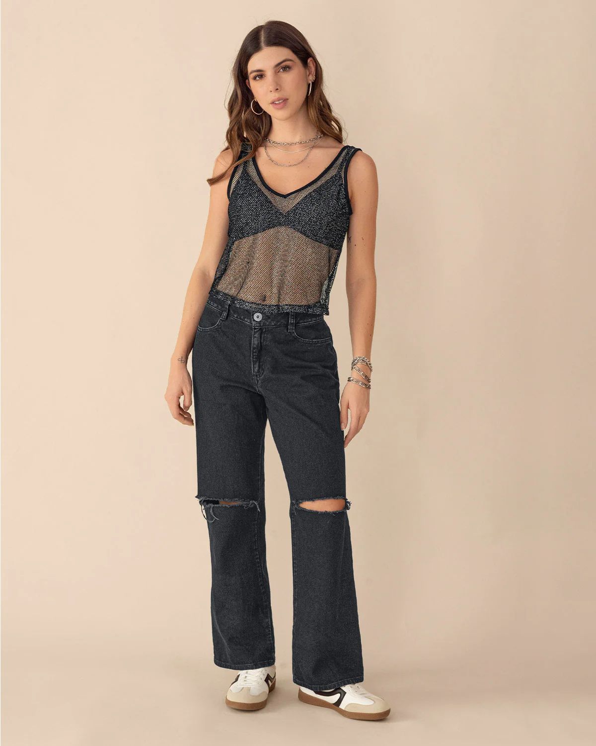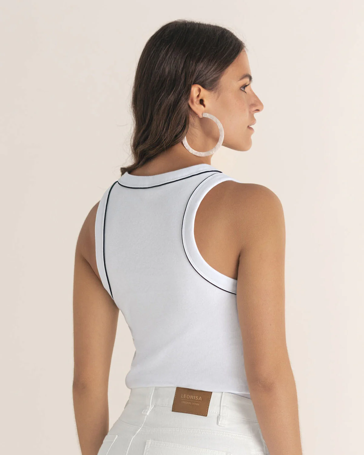 Camiseta manga corta con cuello redondo y vuelo en bordes en mangas