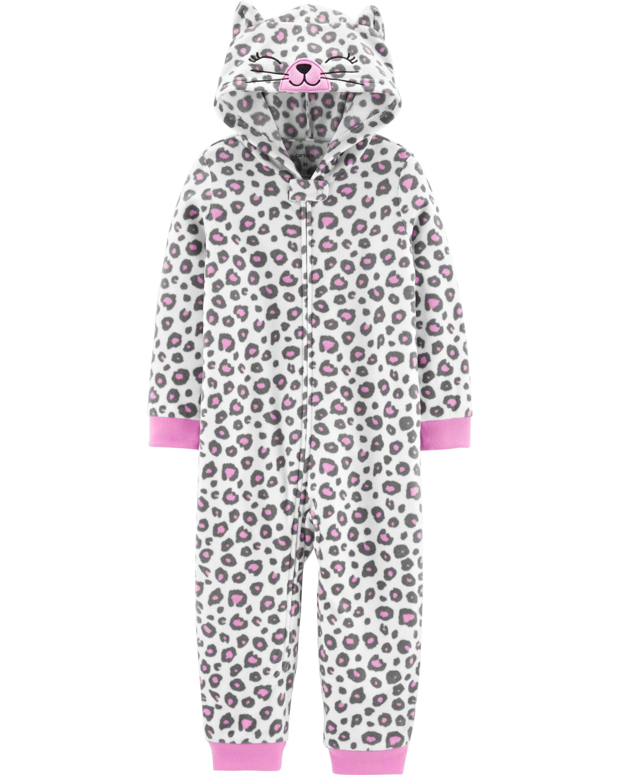 Pijama CARTERS 1-Piece Leopard Cat Hooded Fleece Footless PJs Micropolar