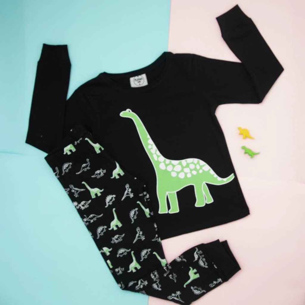 Pijama 2 piezas 100% algodón hipoalergénico Modelo Dinosaurios flúor