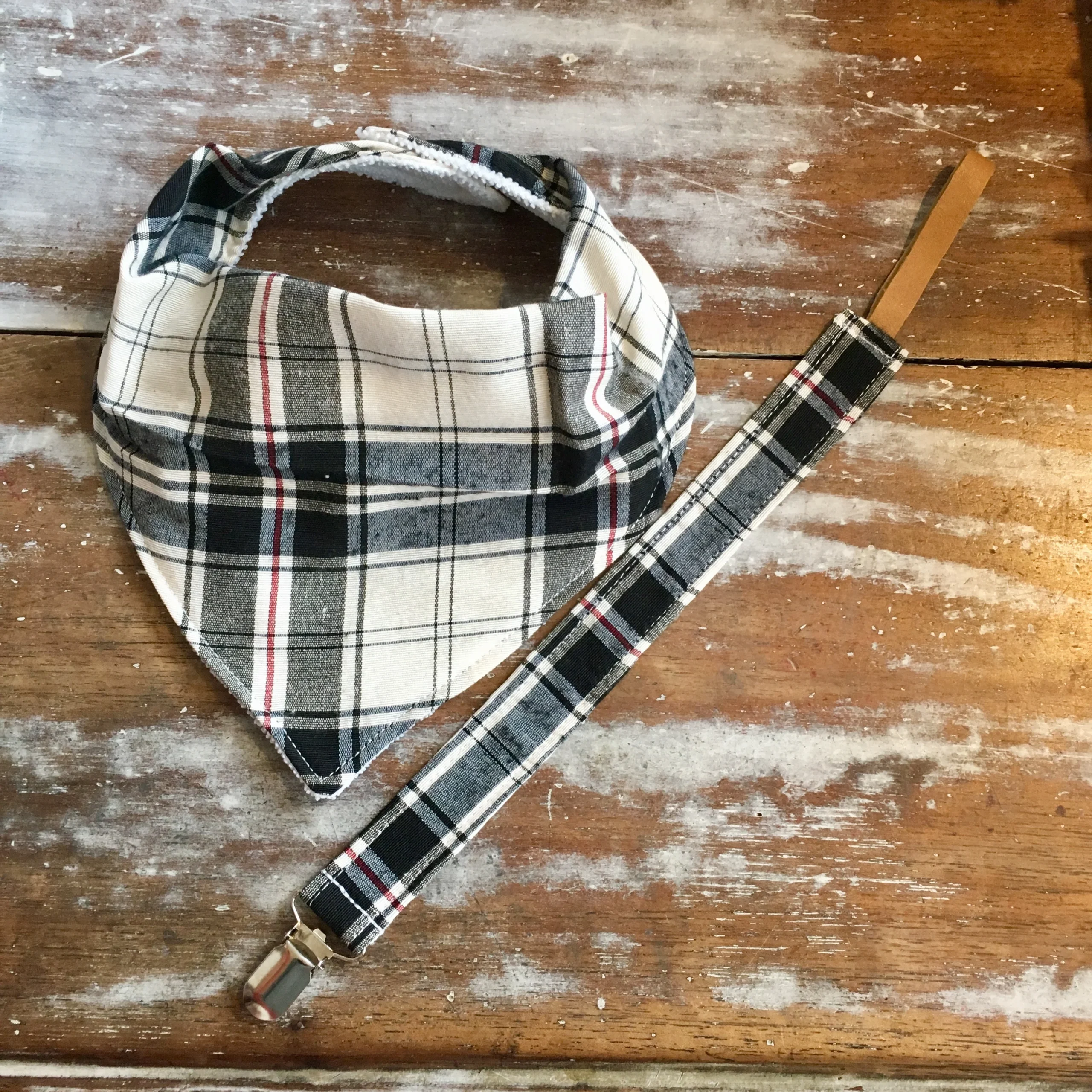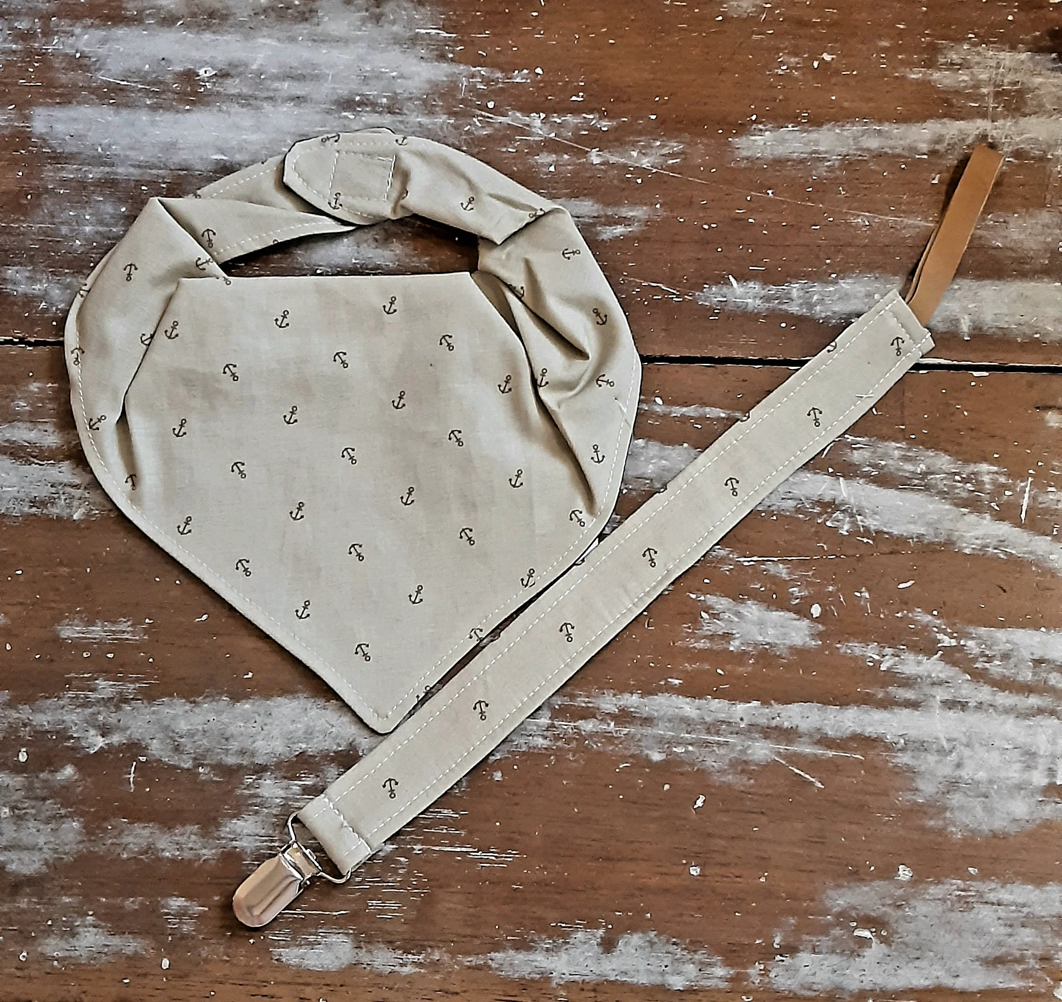Set Babero Bandana ( algodón doble) y porta-chupetes