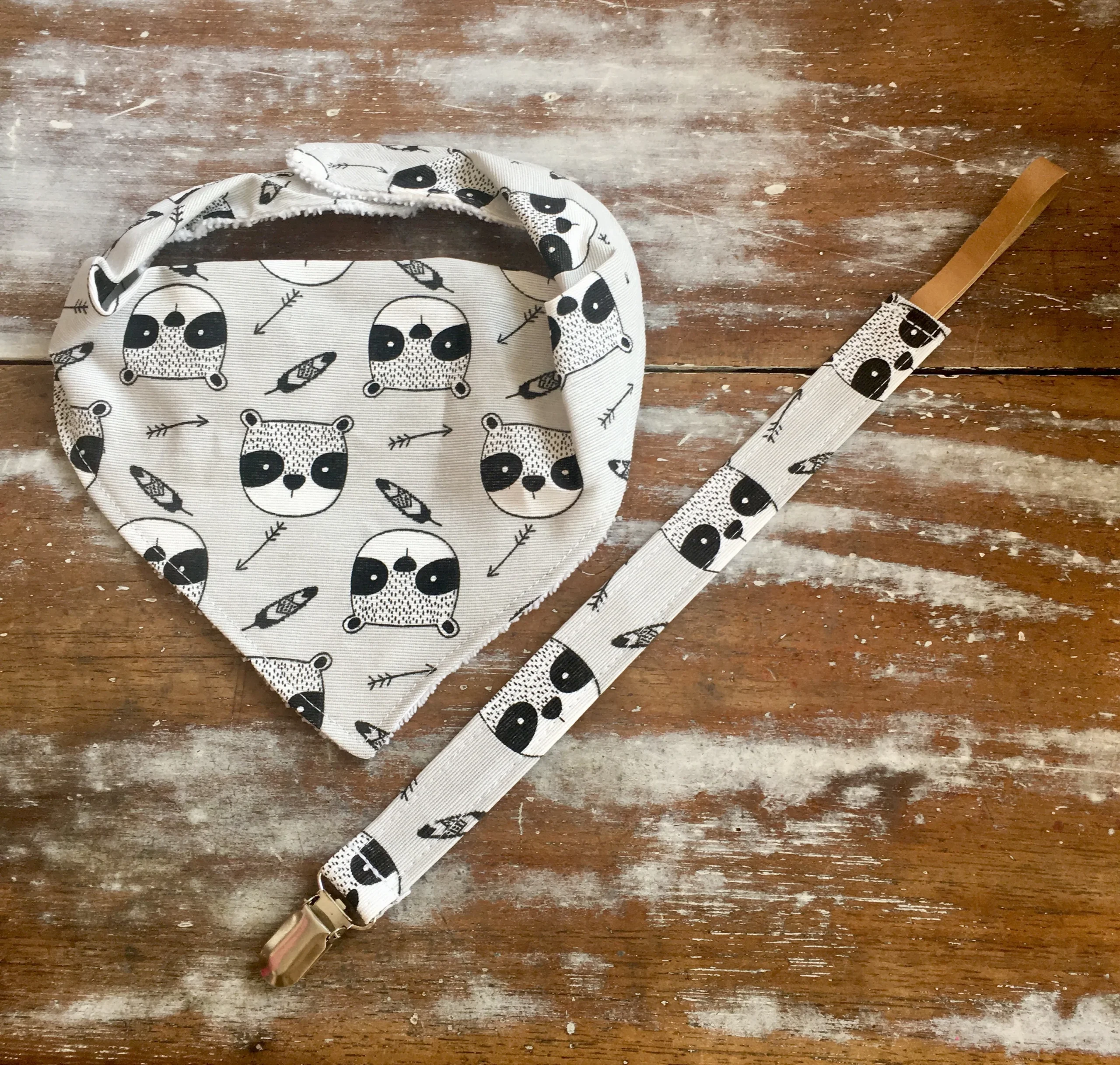 Set Babero Bandana ( algodón + towel ) y porta-chupetes