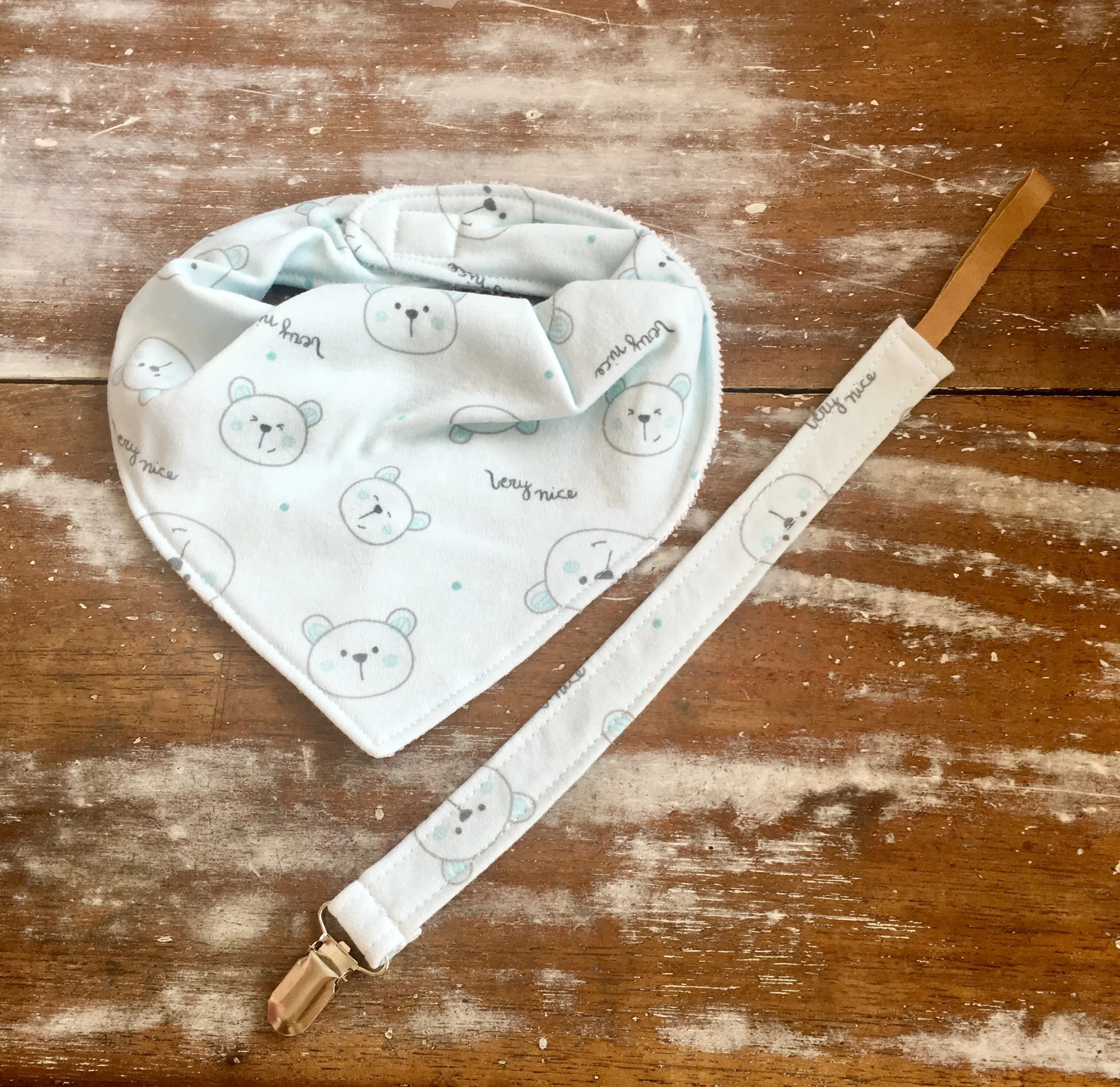 Set Babero Bandana ( algodón doble ) y porta-chupetes