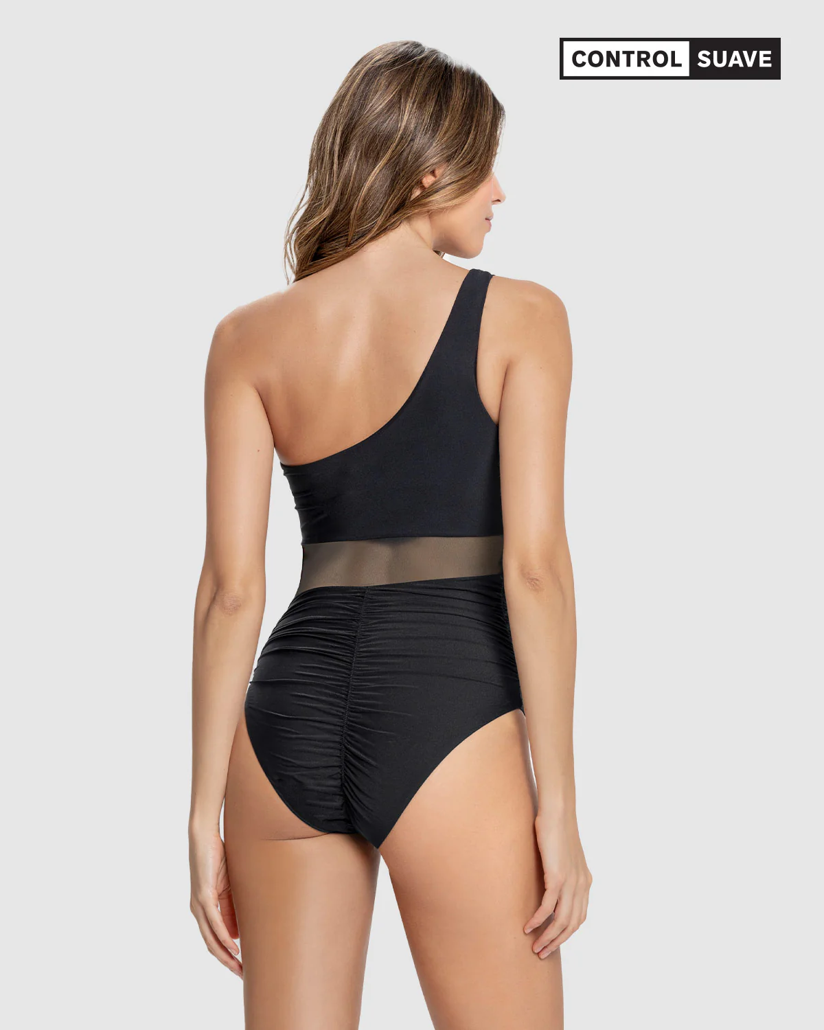 Traje de baño entero control suave con transparencias y efecto brillo