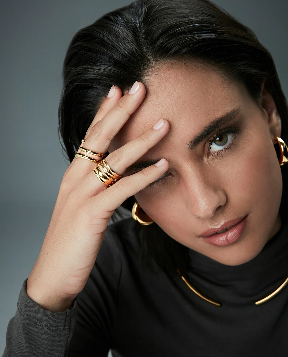 Un anillo que exuda elegancia y estilo moderno con un diseño audaz. Fabricado en acero con un acabado IP dorado, este anillo ancho ofrece una presencia imponente y sofisticada. Su diseño minimalista lo convierte en una pieza versátil que se adapta perfectamente a cualquier ocasión, desde looks diarios hasta eventos más especiales. Disponible en tallas 12, 14, 16 y 18, este anillo es ideal para mujeres que buscan una joya que combine modernidad, distinción y comodidad, realzando su estilo con un toque de lujo y elegancia atemporal.