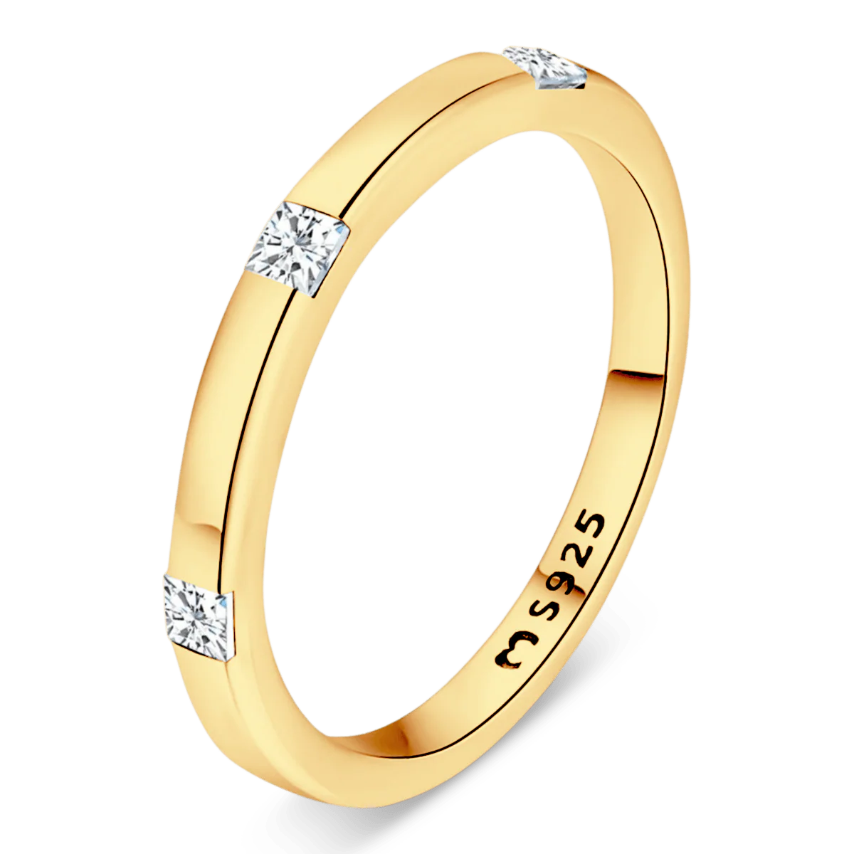 Anillo con tres preciosas circonitas iluminantes distribuidas, elaborado en plata de primera ley (S925).