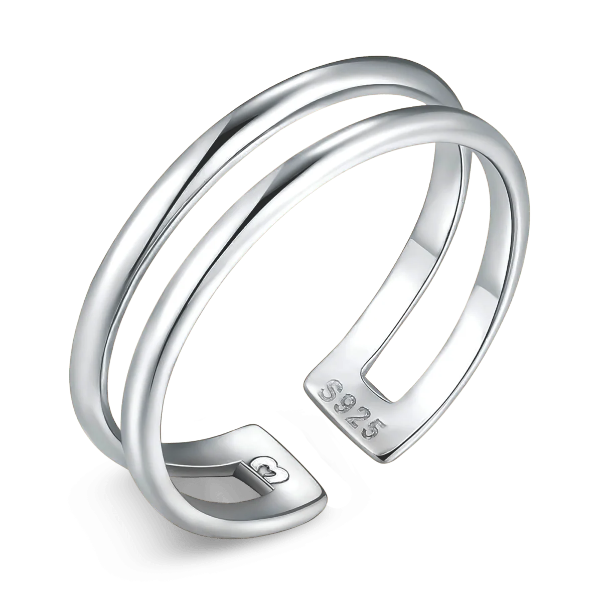 Anillo abierto formado por dos elegantes líneas, elaborado en acero inoxidable quirúrgico (316L)
