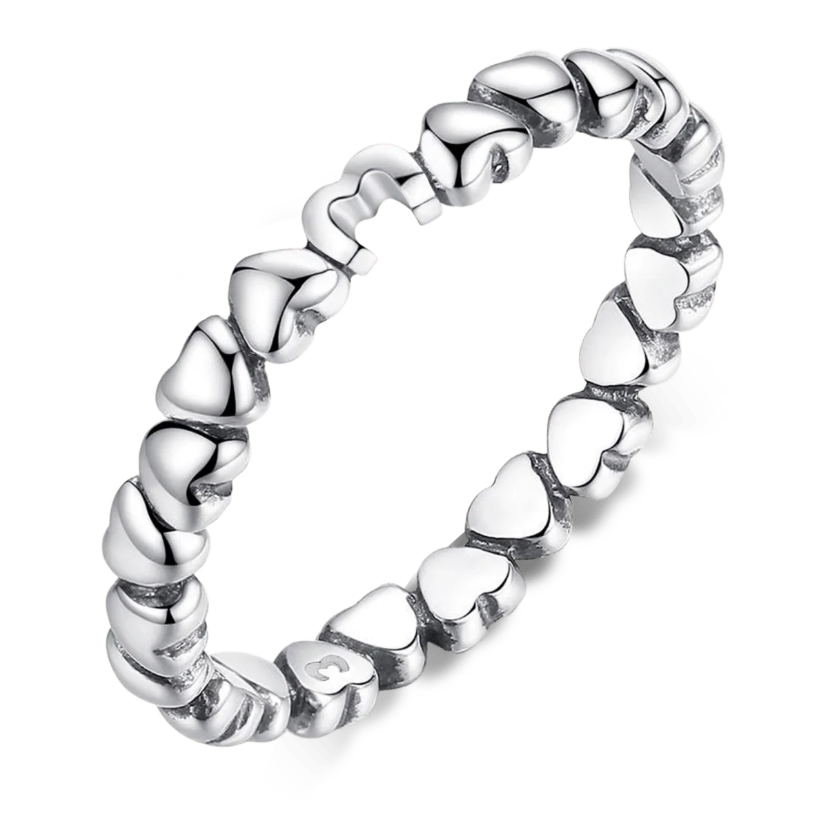 Hermoso anillo formado por corazoncitos conectados que le dan un toque chic y romántico a tu estilo.