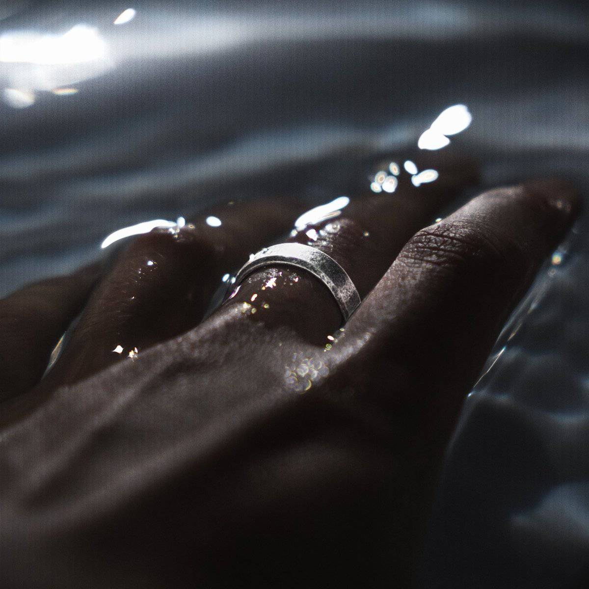 Anillo de hombre con especial aspecto grisáceo, disponible en dos diferentes presentaciones para escoger tu favorito, en acero inoxidable de la mejor calidad (316L).