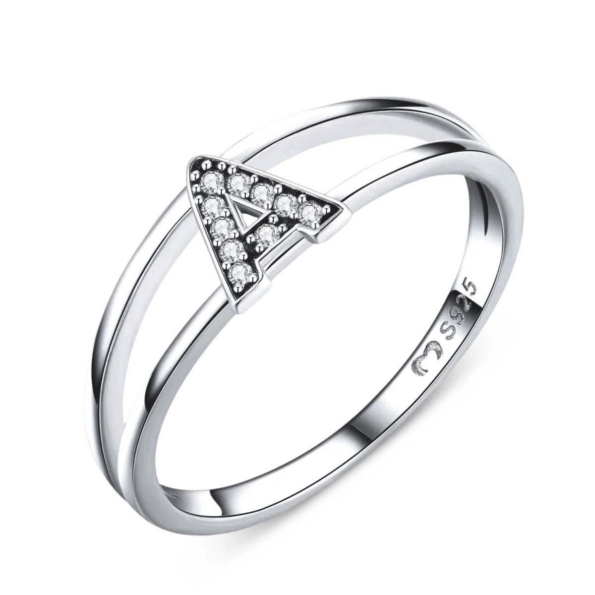 Anillo diseñado con doble línea en su fino aro y una letra inicial rodeada de circonitas brillantes, para elegir tu favorita, elaborado en plata de primera ley (S925).