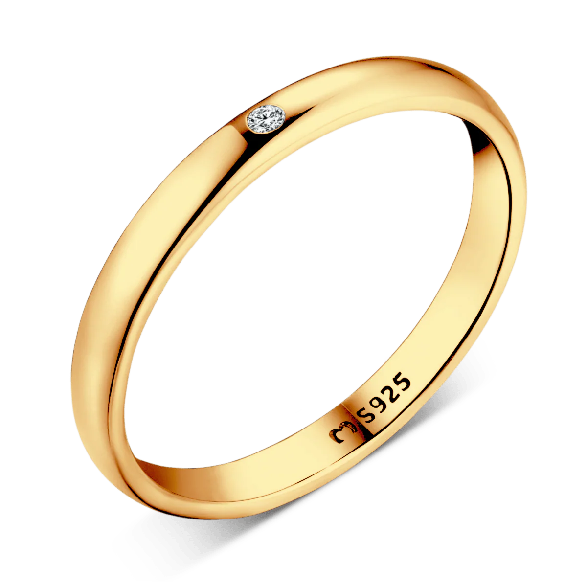 Anillo de aro grueso con circonita brillante y de forma plana en el centro, elaborado en plata de primera ley (S925).