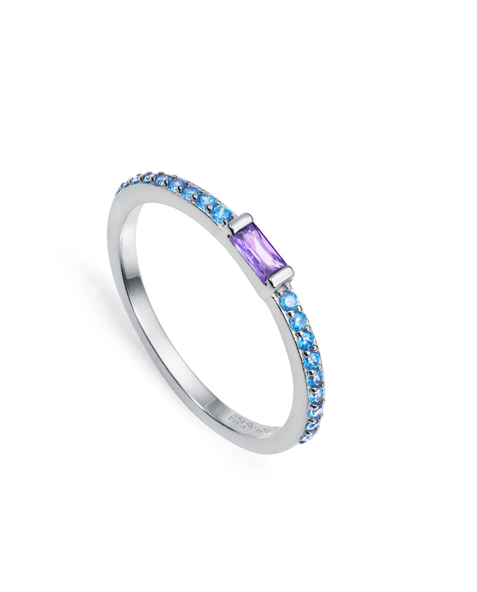 Nuestro anillo de plata de ley con baño de rodio y circonitas de color azul y morado combina elegancia y modernidad, ideal para cualquier look. En Viceroy, cada diseño es único y hecho con el mayor cuidado, reflejando nuestra dedicación a la excelencia y la innovación. Esta pieza es perfecta para aquellos que buscan un accesorio que no solo sea bello, sino también significativo, capturando la esencia de su estilo personal. Disponible en talla 10, 12, 14 y 16