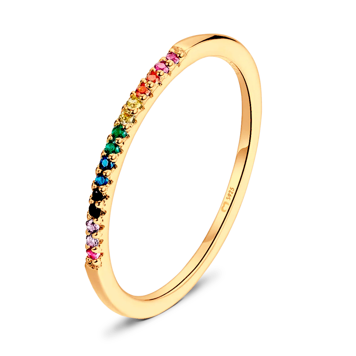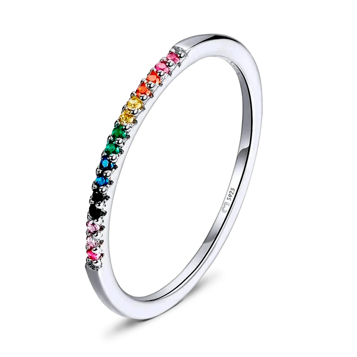 Precioso anillo con circonitas de colores que forman un arcoíris, elaborado en plata de primera ley (S925).