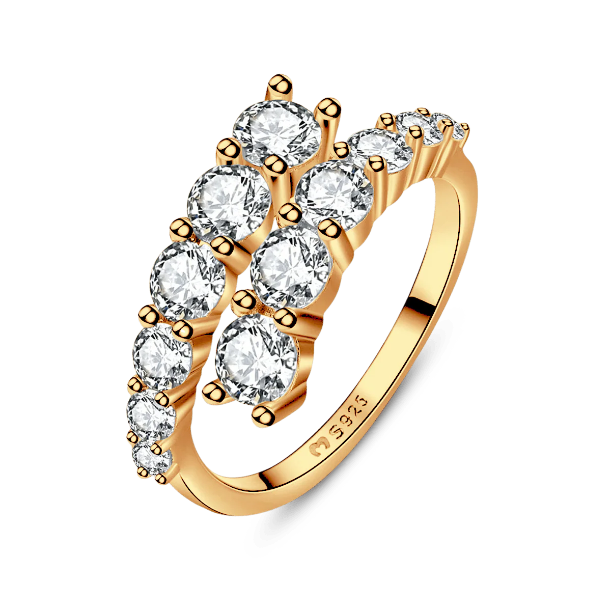 Anillo ajustable en forma de rosca espiral, adornado con radiantes circonitas blancas, en plata de primera ley (S925).
