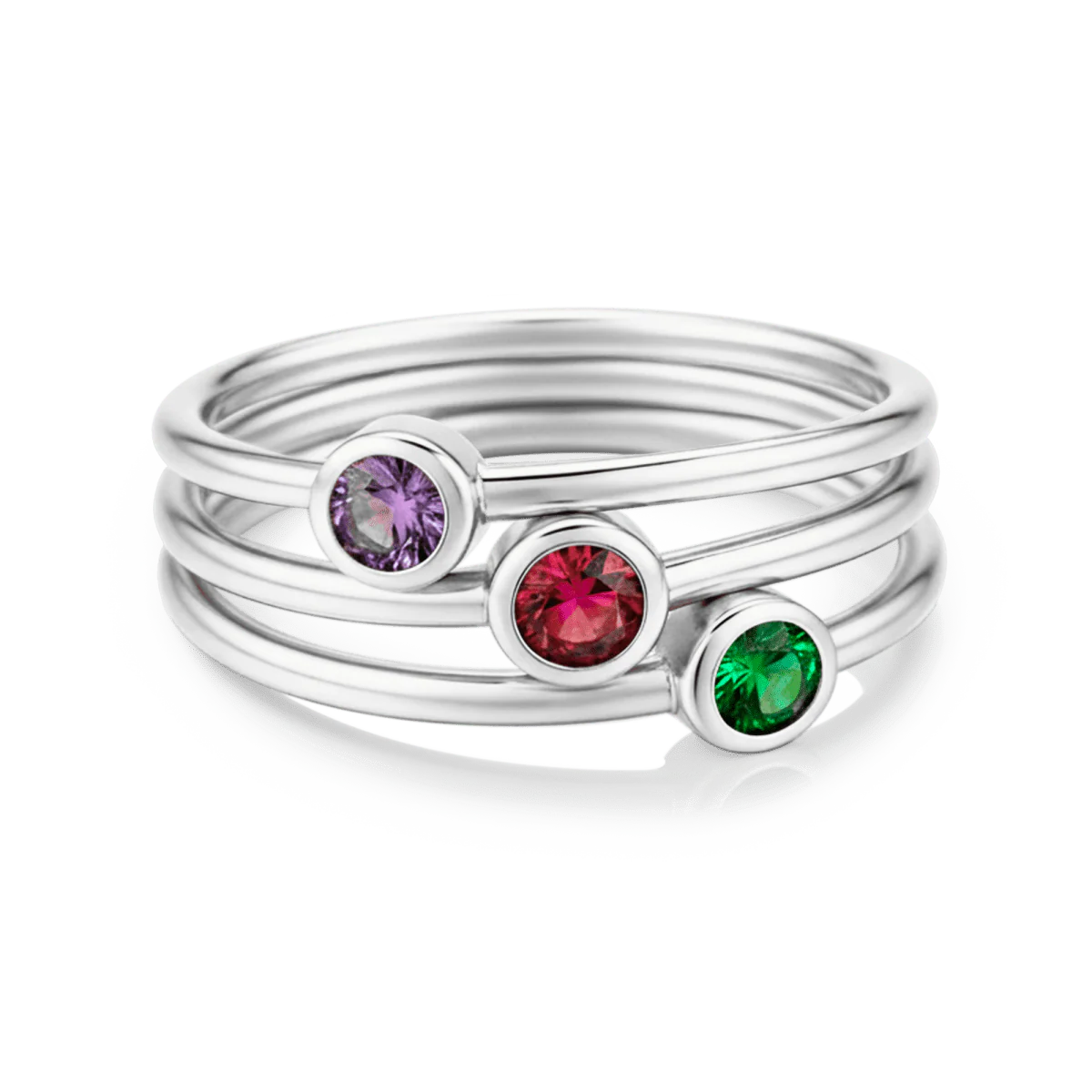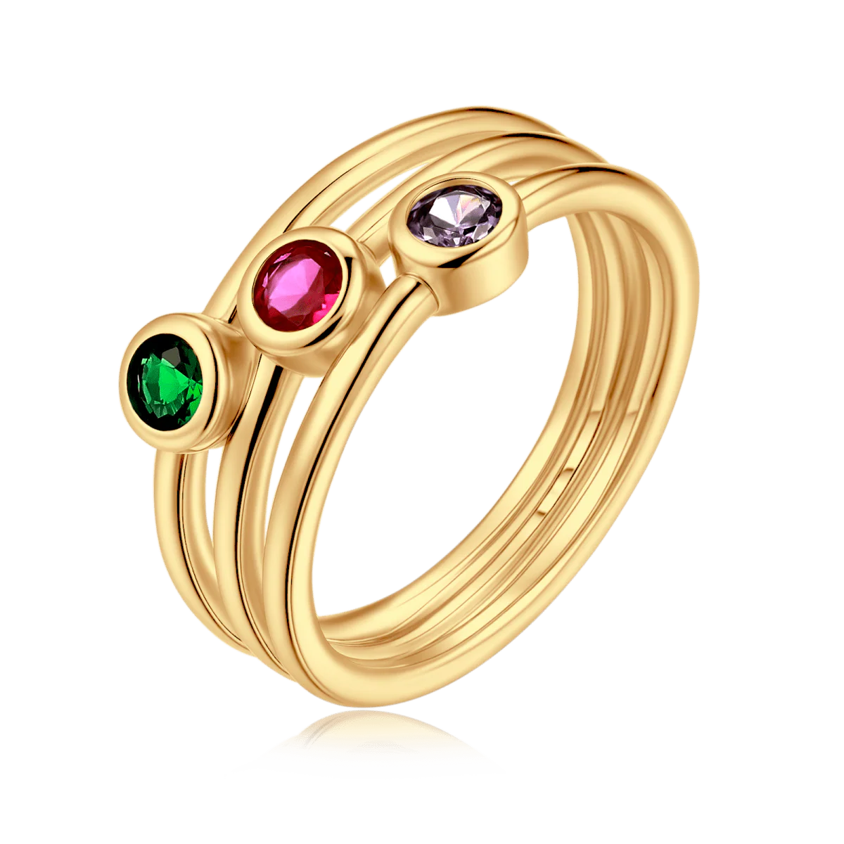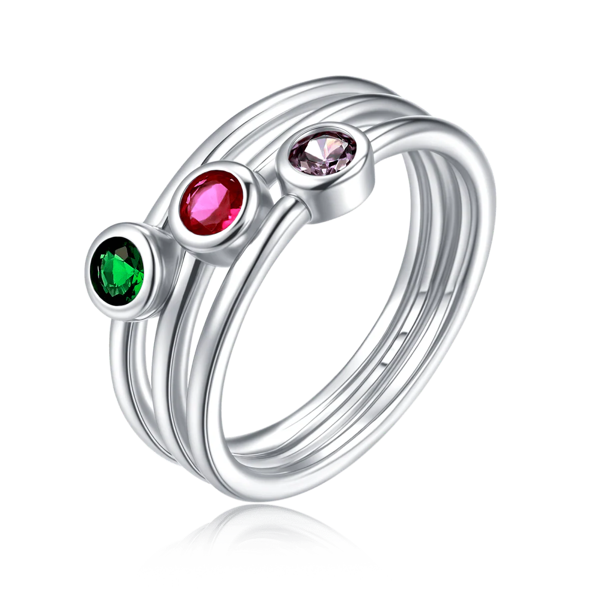 Fino y triple anillado con circonitas multicolor ubicadas en forma diagonal, elaborado en plata de primera ley (S925).