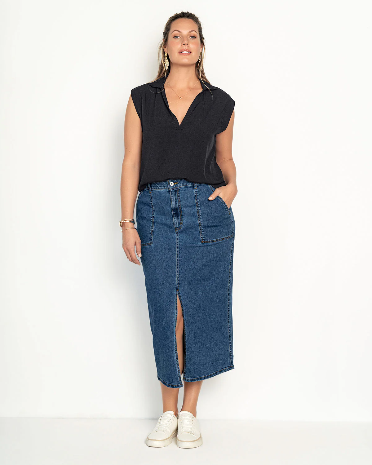 ¡Amamos las básicas con detalles renovados! Y esta blusa manga sisa con cuello camisero en V es una de nuestras favoritas. Nos encanta porque se acomoda fácilmente a diferentes estilo y con todos se ve bien. Úsala con nuestros bras triangulares para que tu escote se vea genial y combínala con una falda en denim o con tus pantalones favoritos.