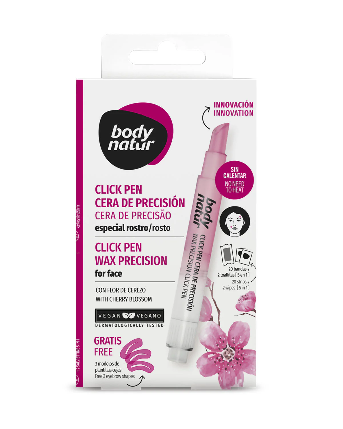 Body Natur click pen depilatorio de precisi贸n facial para todo tipo de pieles sin necesidad de calentar. Especial para el rostro. Resultados hasta 4 semanas sin vello. Contenido: 3.6ml.