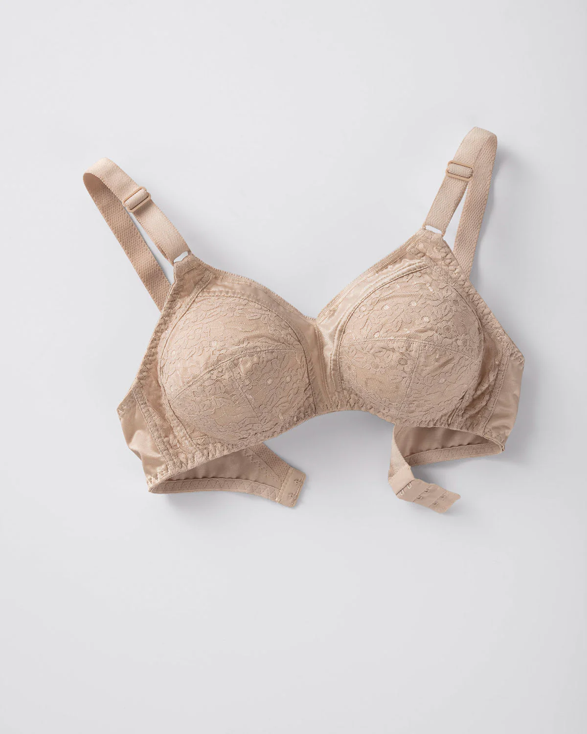 Brasier sin arco, con copas completas que cubren totalmente el busto garantizando una modelación natural. Sus cortes y costuras que reemplazan los arcos, te brindan soporte y comodidad, y su estructura lateral centra tu busto. Las copas están elaboradas en encaje elástico y están forradas al interior en un material muy suave al tacto. Las cargaderas son más anchas para darte máximo soporte y mayor comodidad. Su espalda en tela elástica lisa se ajusta a tu contorno y cuenta con 3 broches y 4 niveles de ajuste.