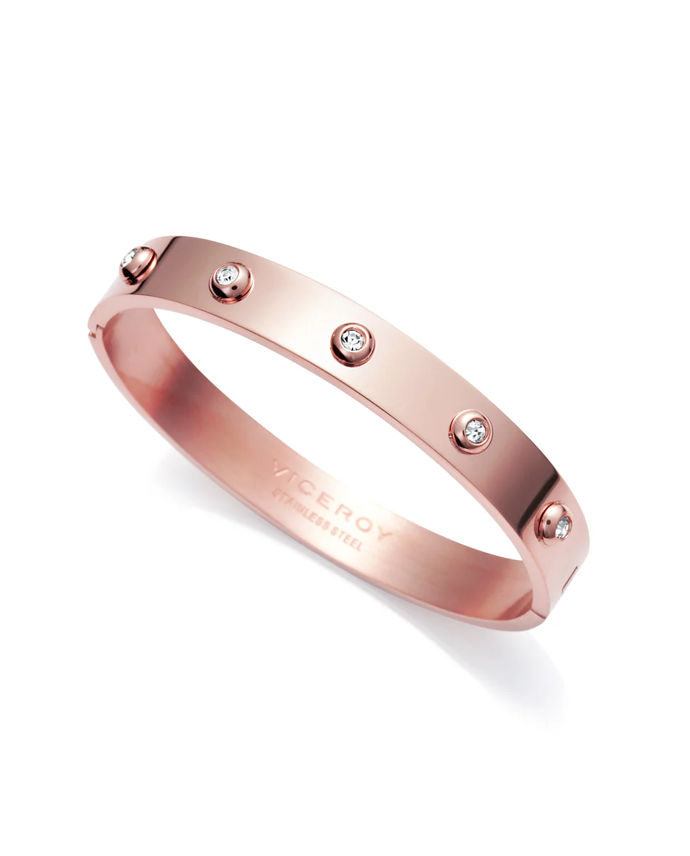 Transforma tu atuendo con este brazalete de acero rosado y circonitas con apertura lateral. Esta joya irradia estilo y sofisticación, perfecta para quienes buscan destacar. Cada pieza de Viceroy está diseñada con una atención meticulosa al detalle, asegurando que cada joya no solo complemente tu look, sino que también cuente una historia de artesanía y dedicación. Diámetro 58 x 50 mm