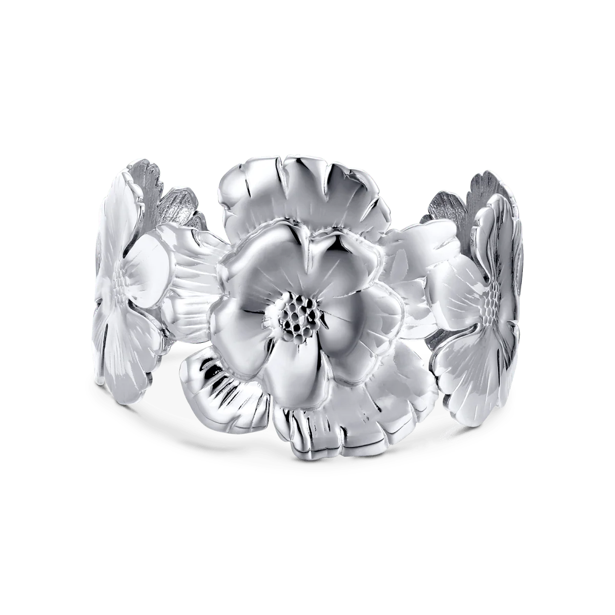 Brazalete formado por flores de pétalos grandes, este diseño se caracteriza por su belleza natural y es perfecto para combinar con otros accesorios, en acero inoxidable de la mejor calidad (316L).