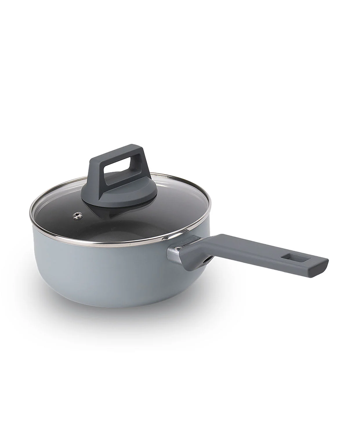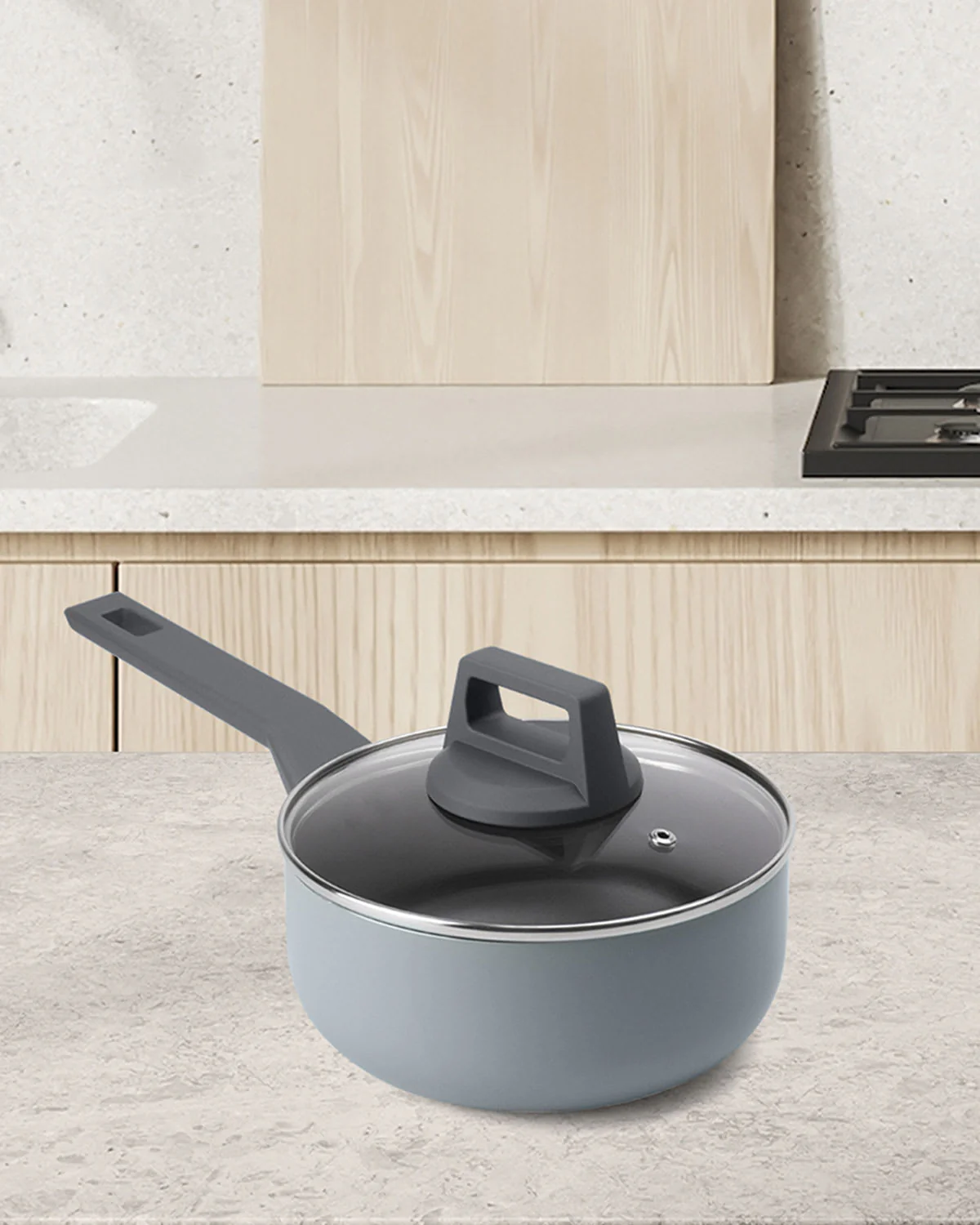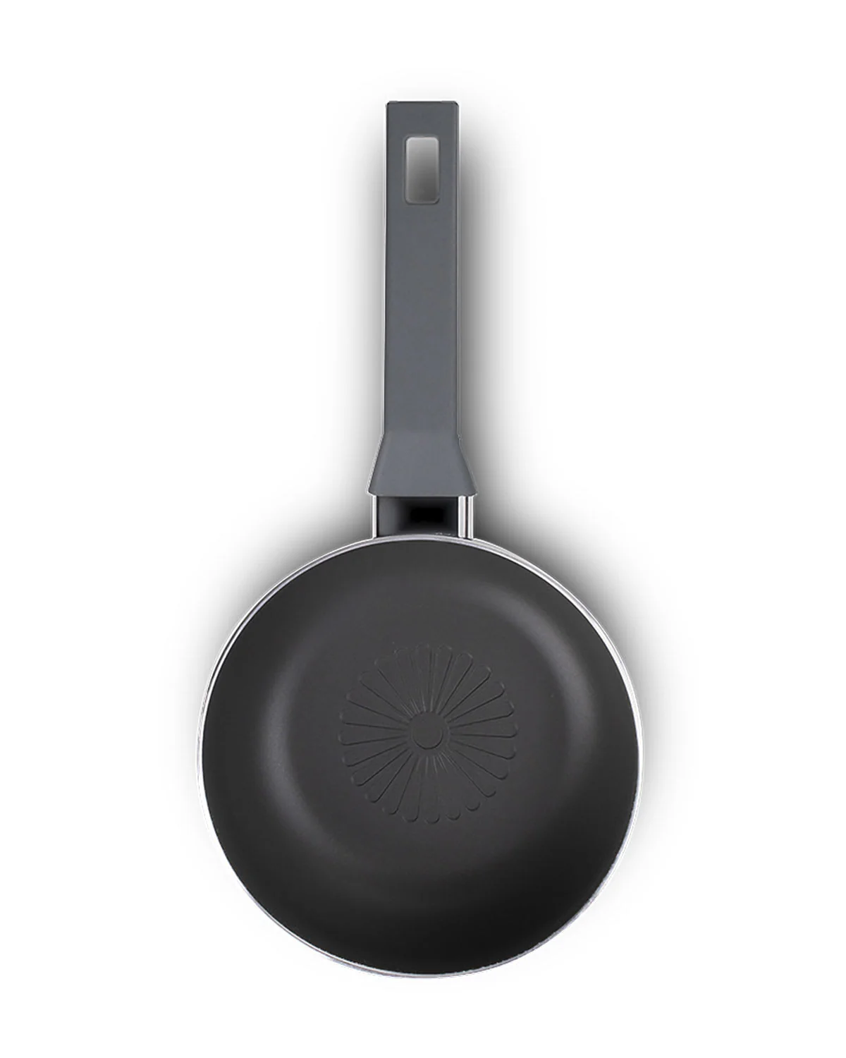 Cacerola con superficie antiaherente y mango softgod. Ideal para cocinas a gas y eléctricas. El diseño floral indica la cantidad de aceite que necesitas.