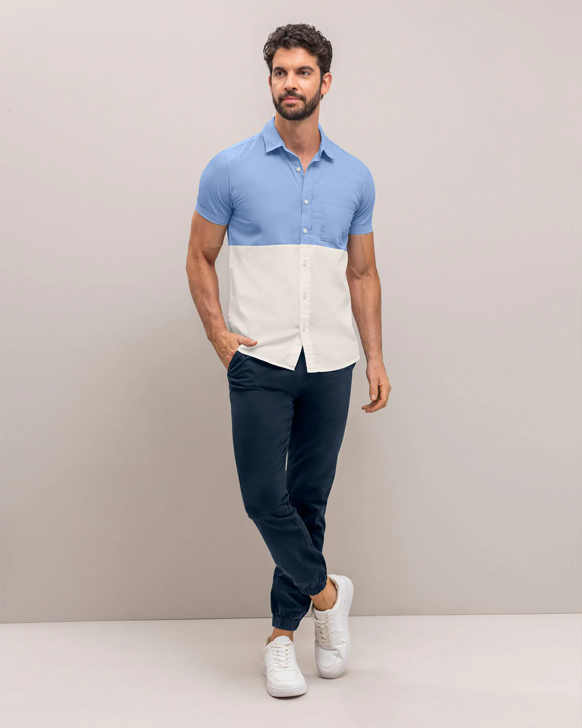 Esta camisa manga corta será una opción siempre que no sepas qué ponerte. Cuenta con botones funcionales y cuello camisero. Además, para un toque de diseño tiene bloques de color. Úsala con nuestros jeans de la temporada.