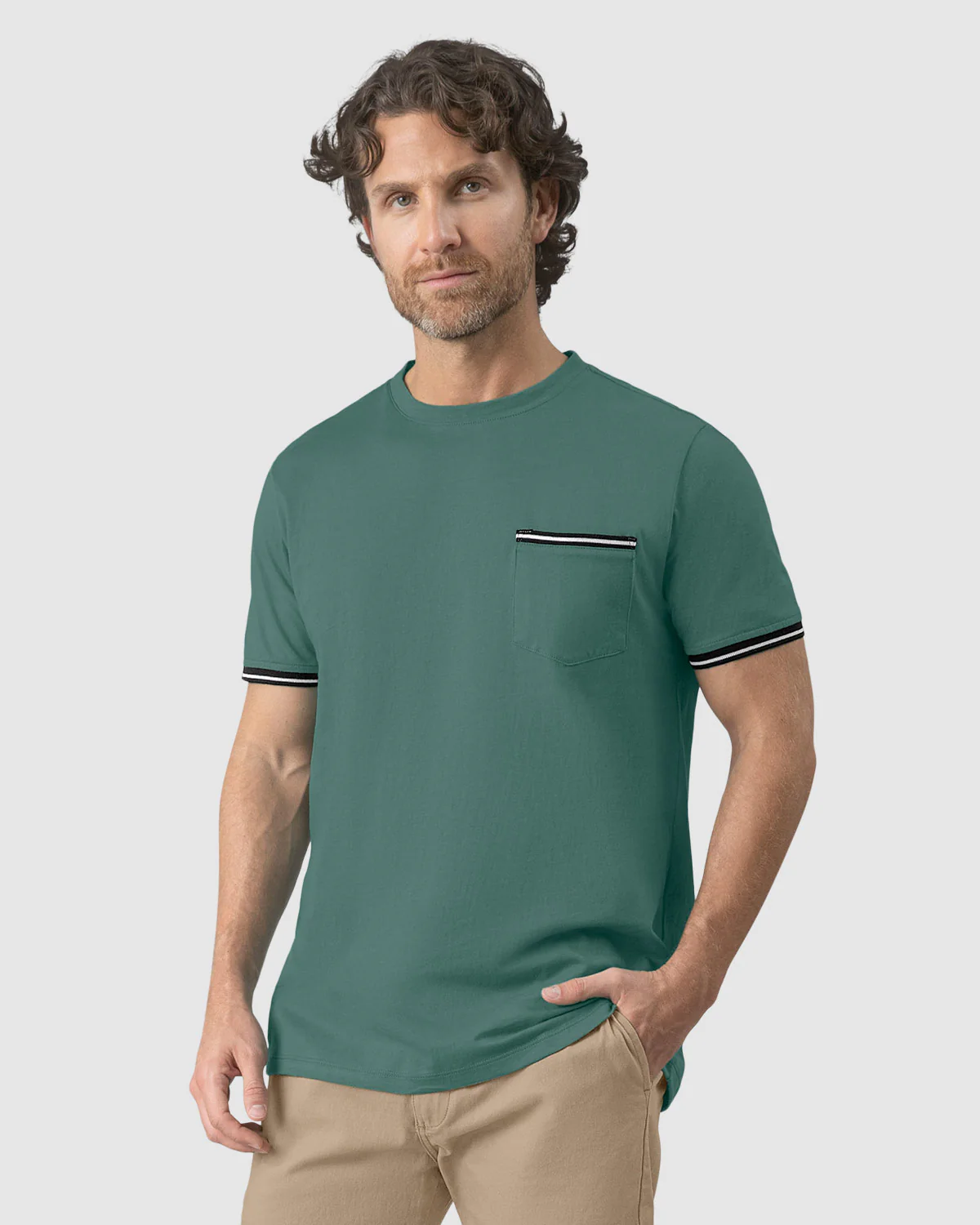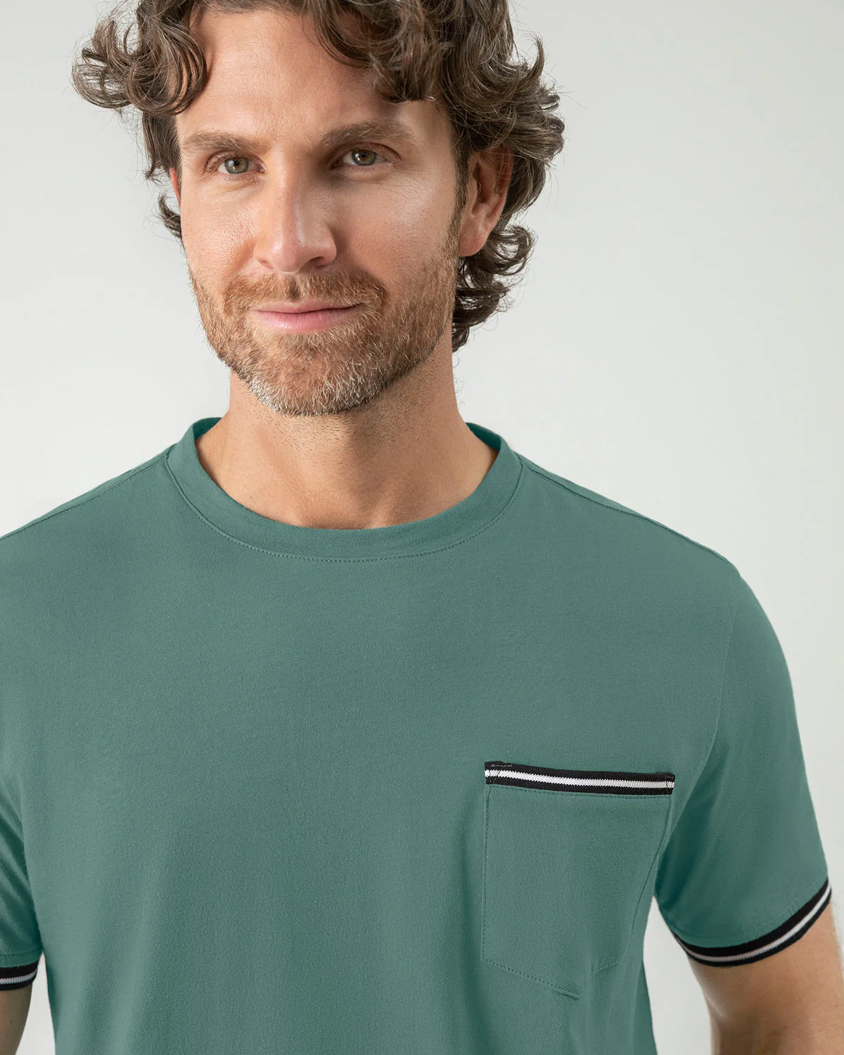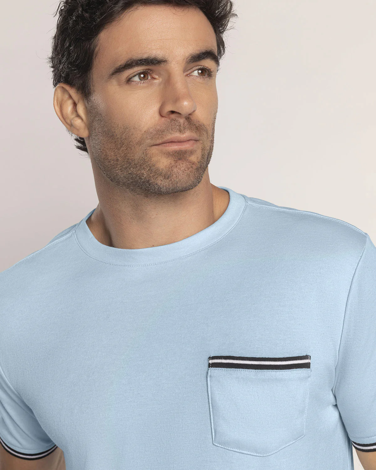 Camiseta manga corta para hombre de silueta semiajustada que combina estilo y comodidad. El bolsillo con ribete tejido y el detalle en las mangas aportan un toque 煤nico y sofisticado. Elaborada en tejido de punto, es la prenda ideal para destacar en cualquier ocasi贸n casual.