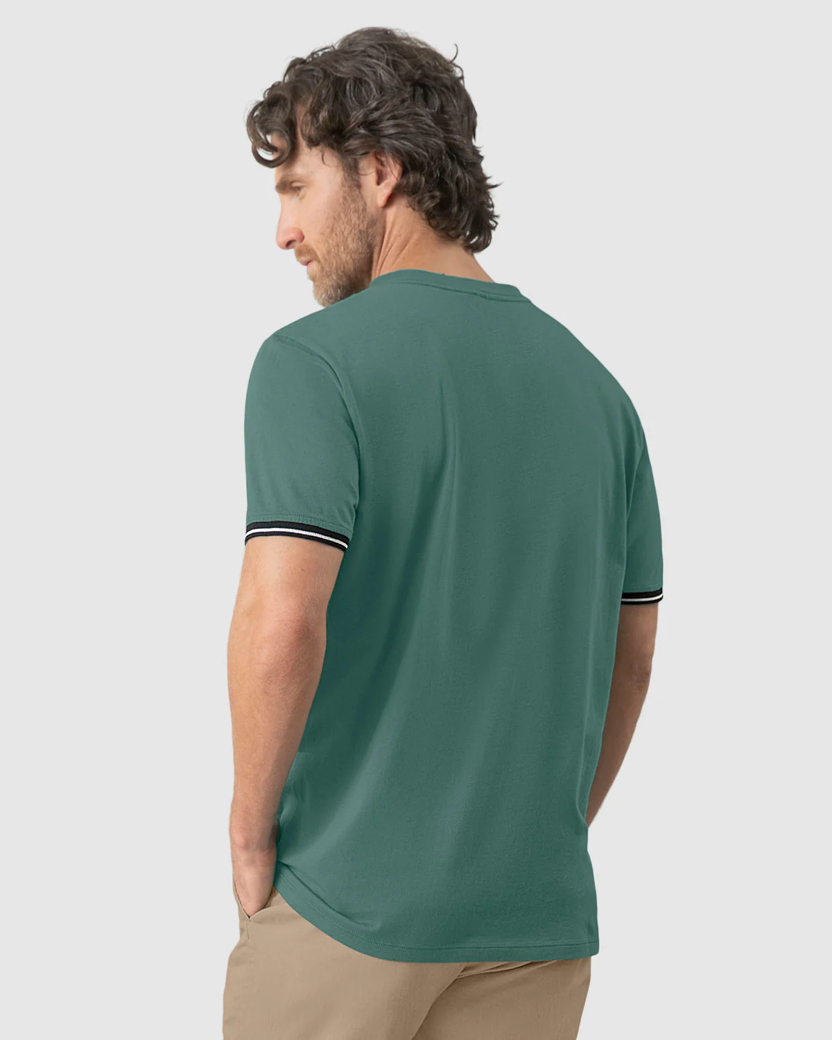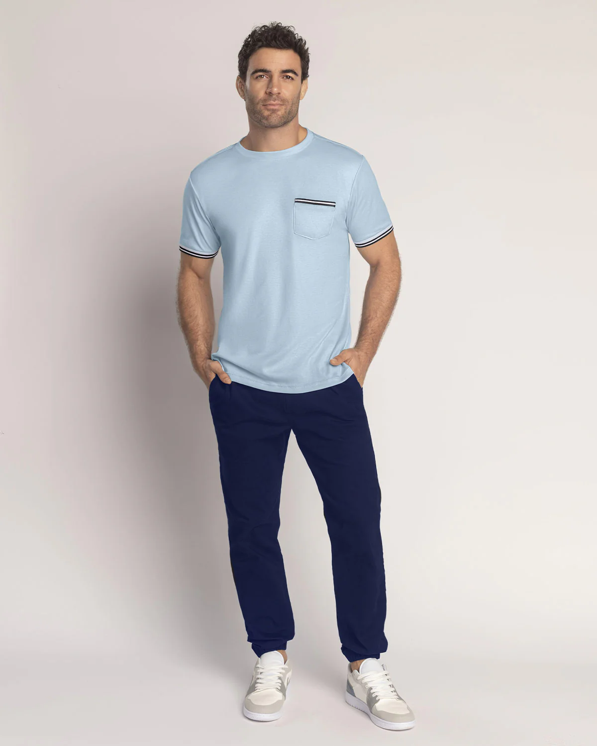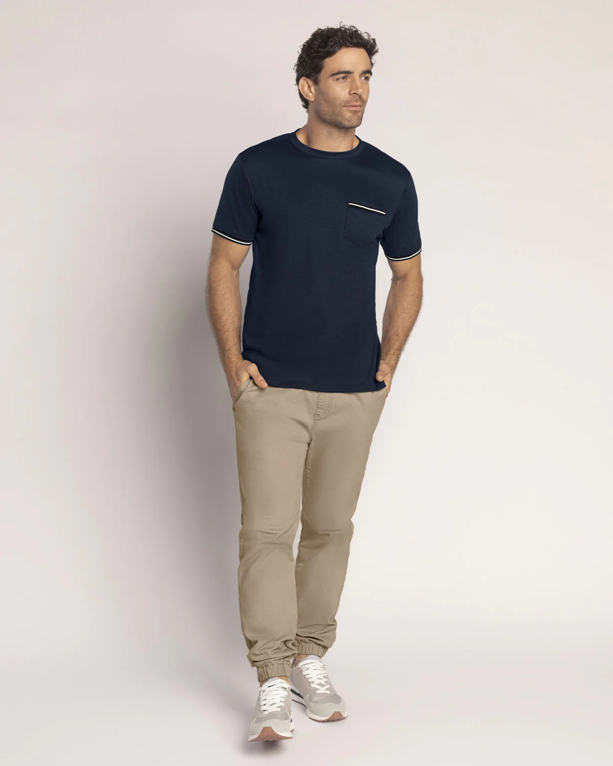 Camiseta manga corta para hombre de silueta semiajustada que combina estilo y comodidad. El bolsillo con ribete tejido y el detalle en las mangas aportan un toque 煤nico y sofisticado. Elaborada en tejido de punto, es la prenda ideal para destacar en cualquier ocasi贸n casual.
