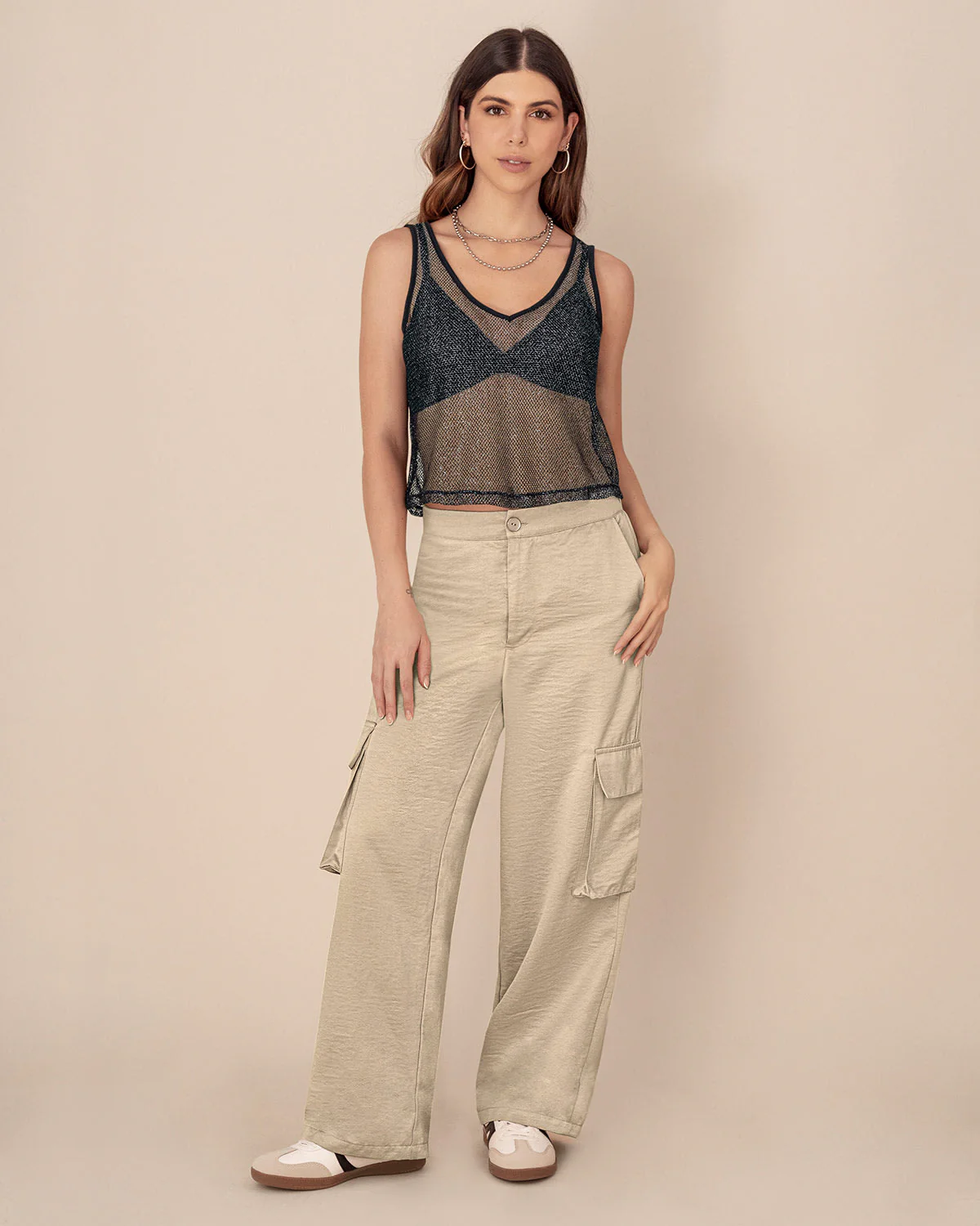 Sé el primero en valorar “Camiseta manga sisa elaborada en malla con brillo”