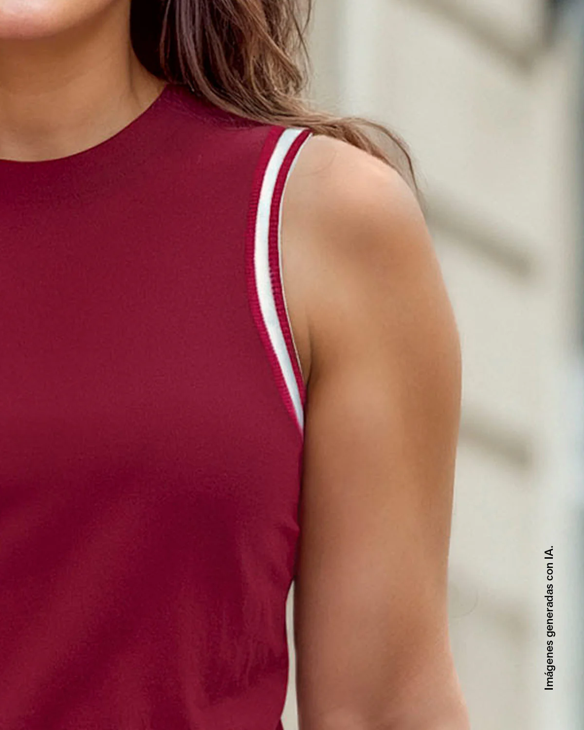 Una silueta clásica, que hará que tu creatividad para armar looks ¡no tenga límites! Esta camiseta manga sisa es perfecta para cualquier ocasión y sus sisas tejidas le dan un toque de diseño especial. Úsala con tus accesorios favoritos y dale tu estilo, ¡estamos seguras que te sacará de apuros!