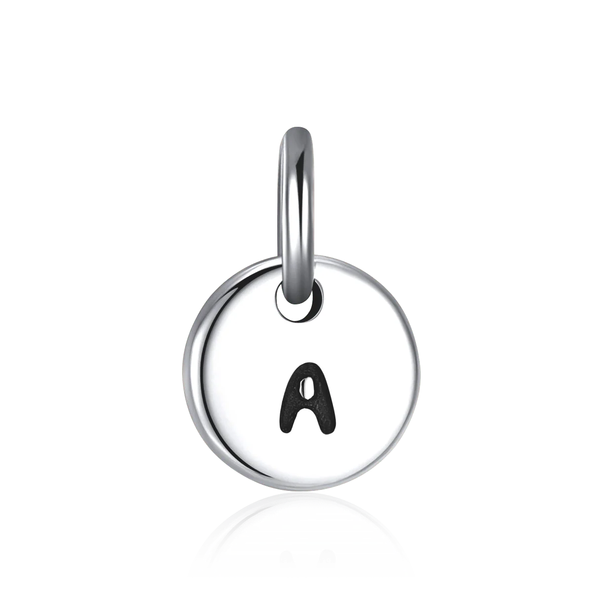 Pendientes y collar para combinar con esferas con letras tipo charms, pulidos y de textura suave, en plata de primera ley (S925).