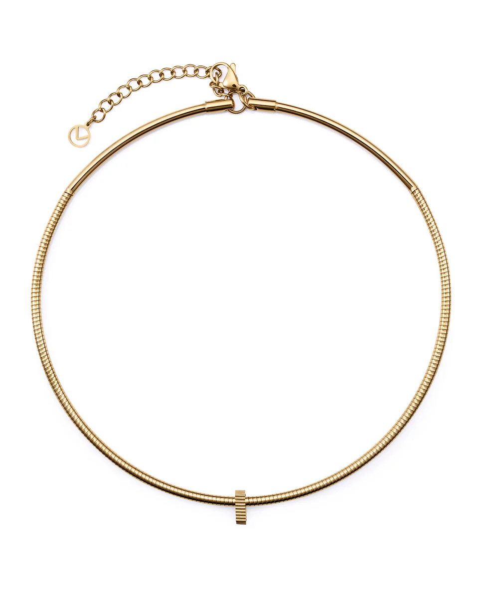 Collar de acero con acabado IP dorado de la colección Laura Escanes, diseñado para la mujer moderna que busca elegancia y estilo. Su diseño tubogas, con un diámetro de 11,5 cm más una extensión de 5 cm, ofrece un toque contemporáneo y sofisticado. Este collar combina a la perfección con cualquier atuendo, desde looks casuales hasta los más formales, aportando un brillo sutil y un aire de lujo. Un accesorio imprescindible de la colección de Laura Escanes, pensado para destacar en cualquier ocasión. Largo 11,5 + 5 cm.