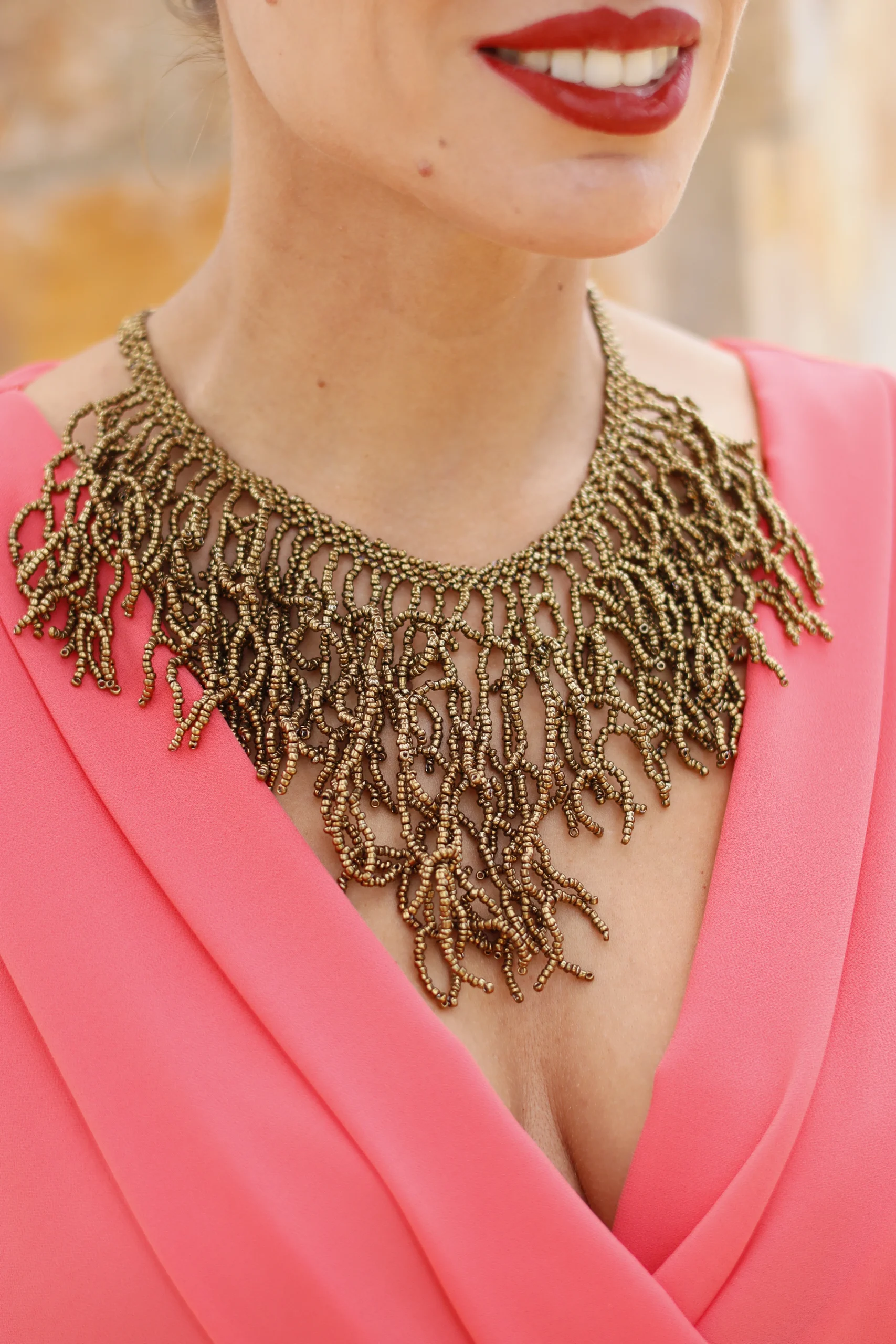 Collar dorado, con cierre de mosquet贸n y cadena ajustable.