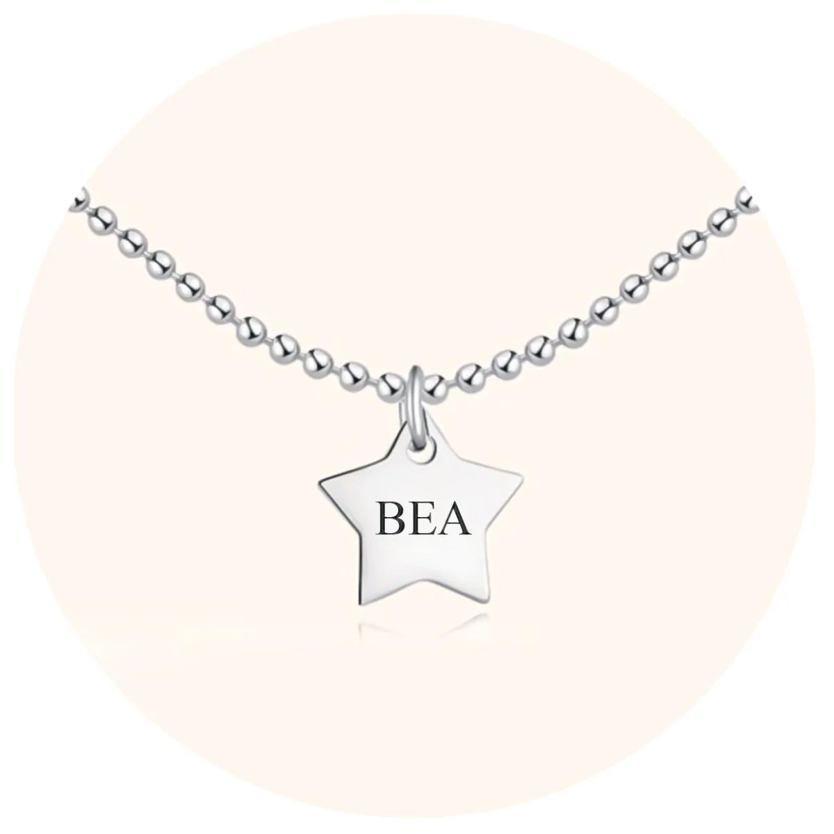 ✨ Diseño único y elegante: El Collar Five Star Personalizado es una joya delicada con una estrella de cinco puntas, perfecta para grabar algo especial. Su cadena de bolitas y su pequeño colgante estelar lo convierten en un accesorio sofisticado y lleno de significado.