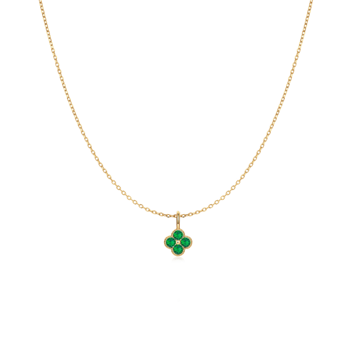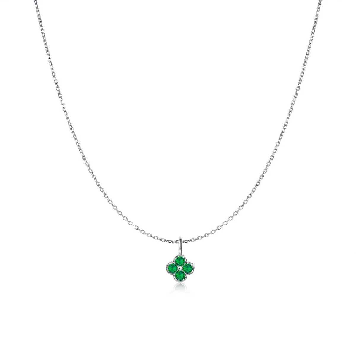 Collar de cadena fina con colgante de flor de cuatro p茅talos con circonitas rojas, blancas o verdes, incrustadas en cada hojita, para escoger tu modelo favorito, elaborado en plata de primera ley (S925).