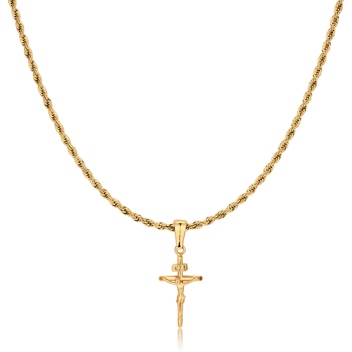 Collar de hombre de estilo clásico con cadena tipo torsal y colgante religioso de crucifijo, que representa a Jesucristo en la cruz, elaborado en acero inoxidable de la mejor calidad (316L).