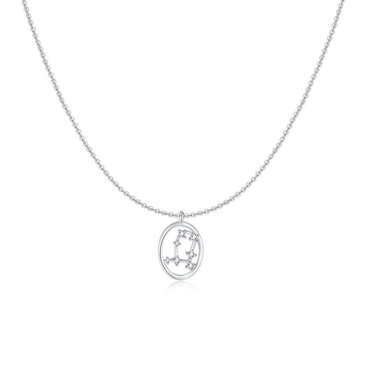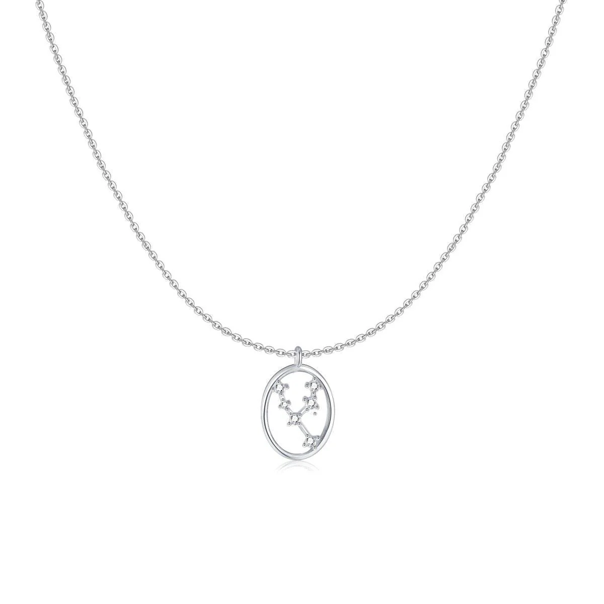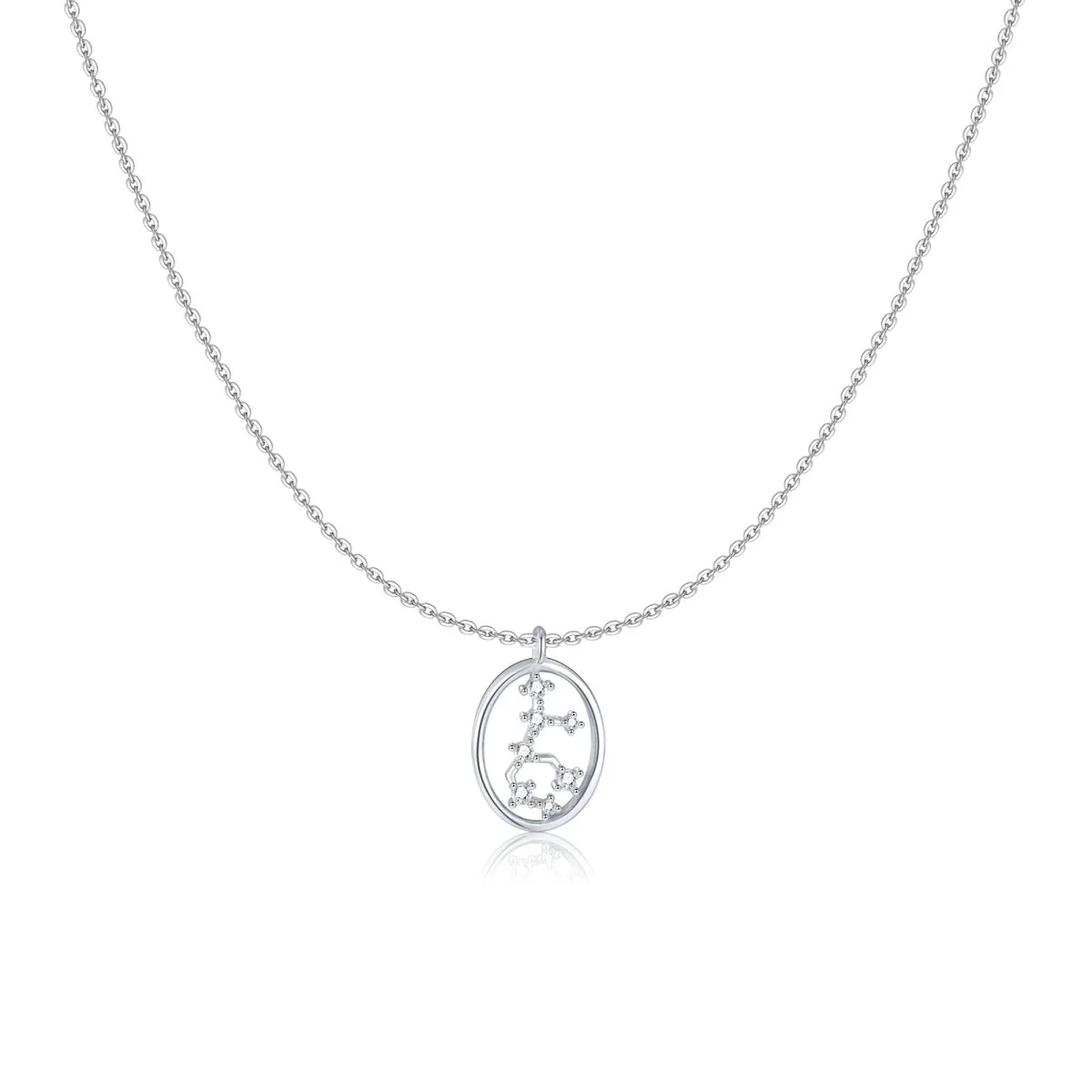 Collar en forma oval con los 12 signos del zodiaco, decorados con circonitas brillantes, en plata de primera ley (S925).