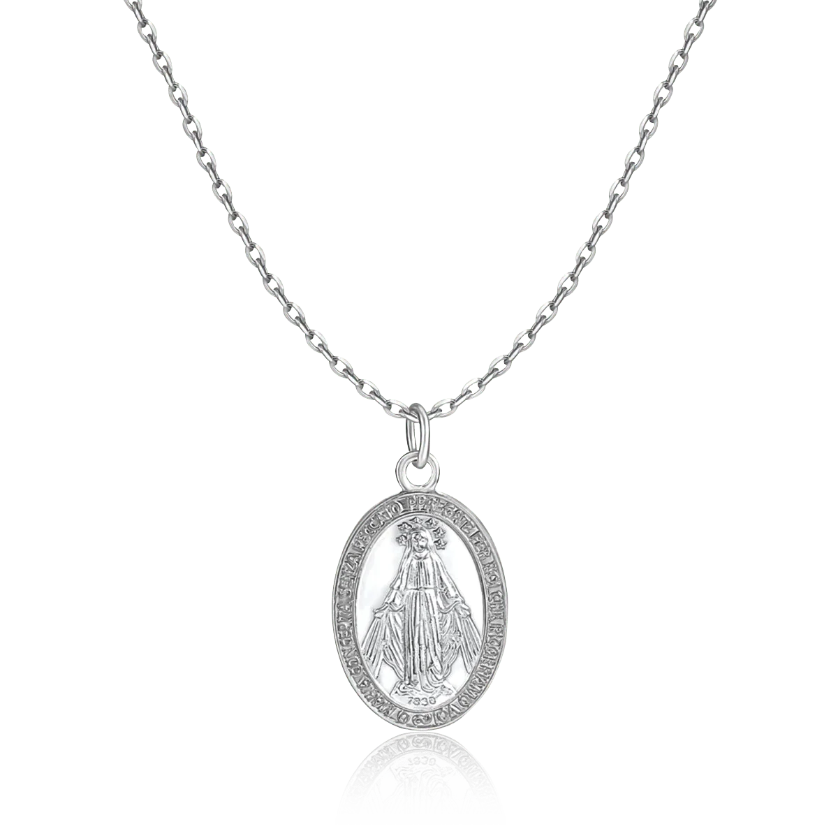 Collar de medallón con la imagen de la Virgen María, elaborado en plata de primera ley (S925).