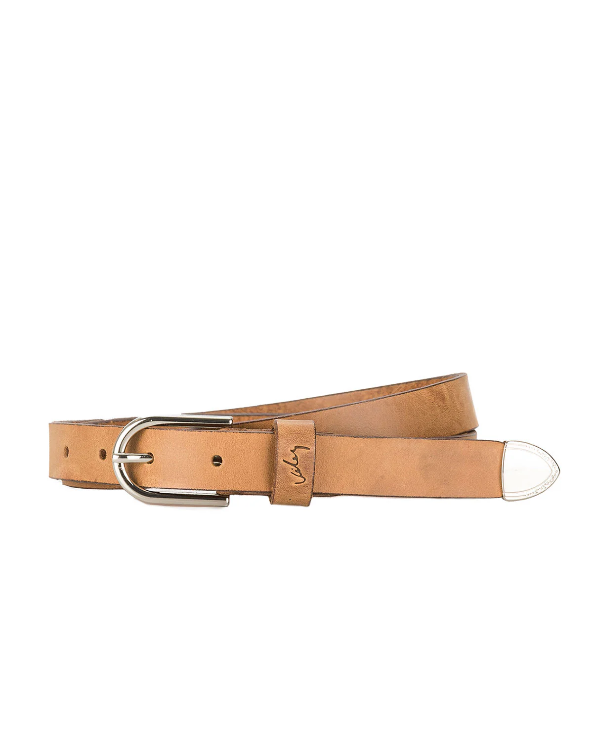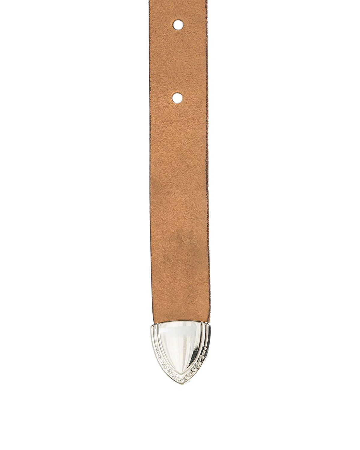 Puntera metálica con formas limpias y refinadas. Marcación al calor. De 2,2 cm de ancho. 100% cuero.