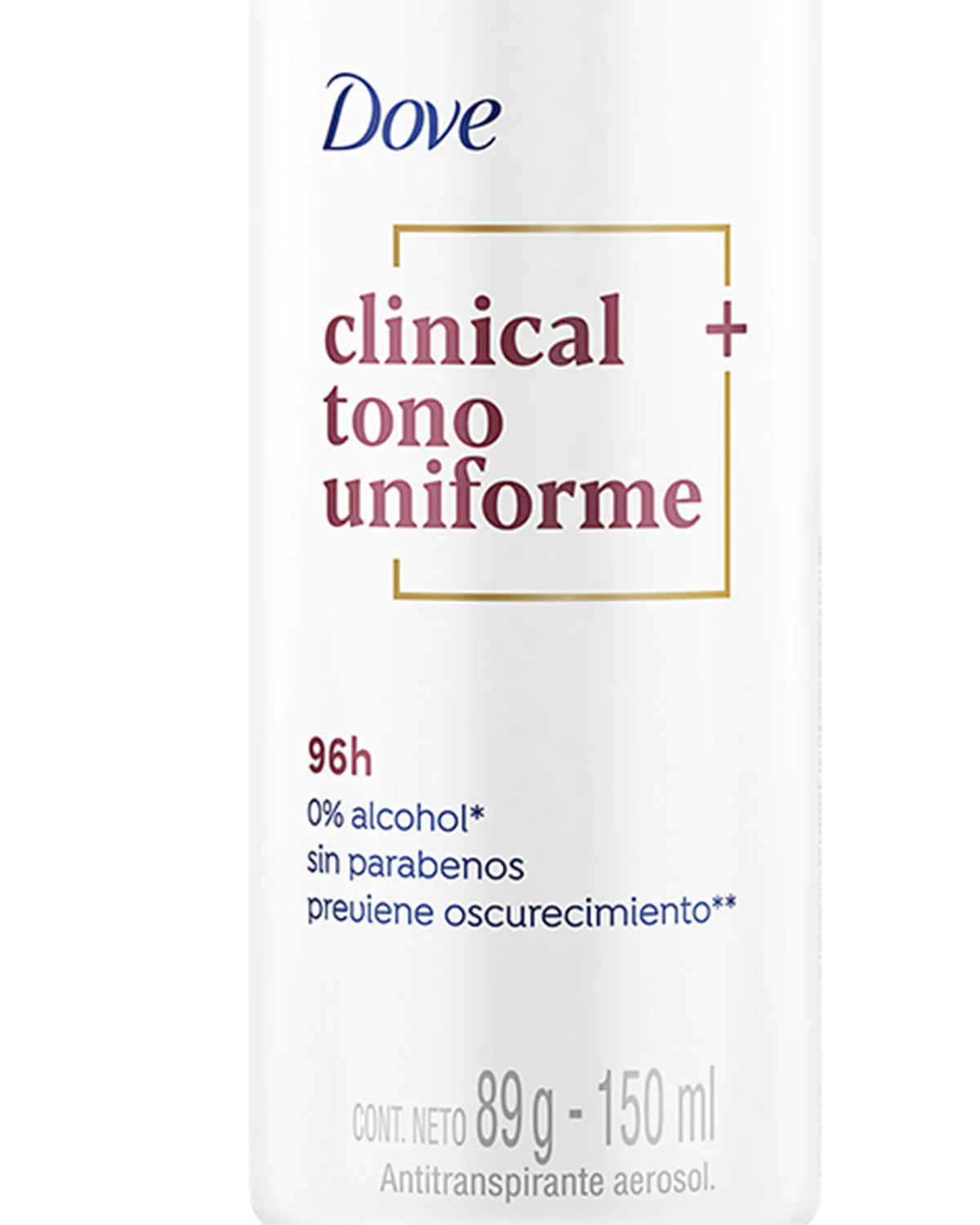 Antitranspirante aerosol clinical m谩s tono uniforme, 0% alcohol, hipoalerg茅nico, previene oscurecimiento.
