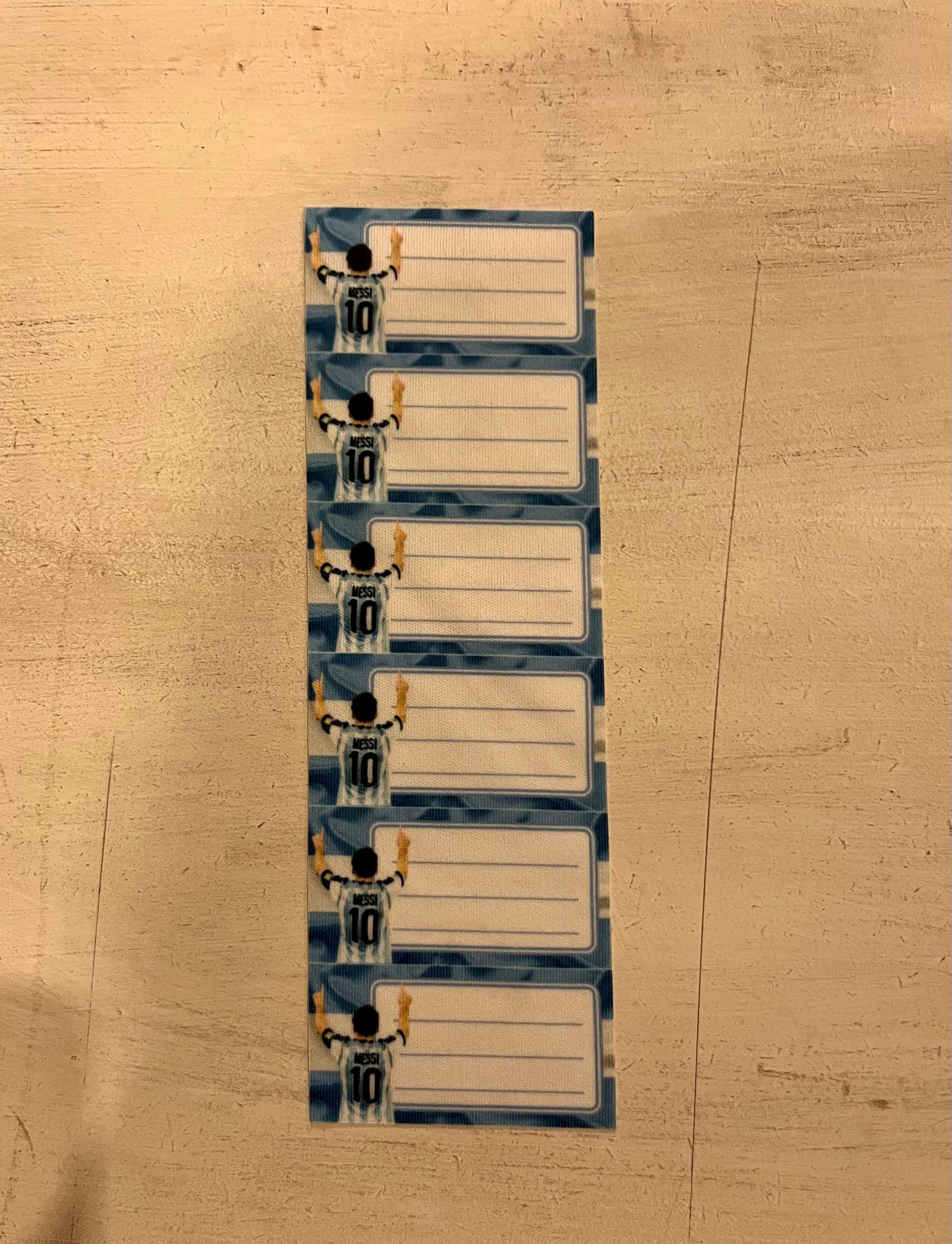 Etiquetas identificatorias termoadhesivas x 6 Messi