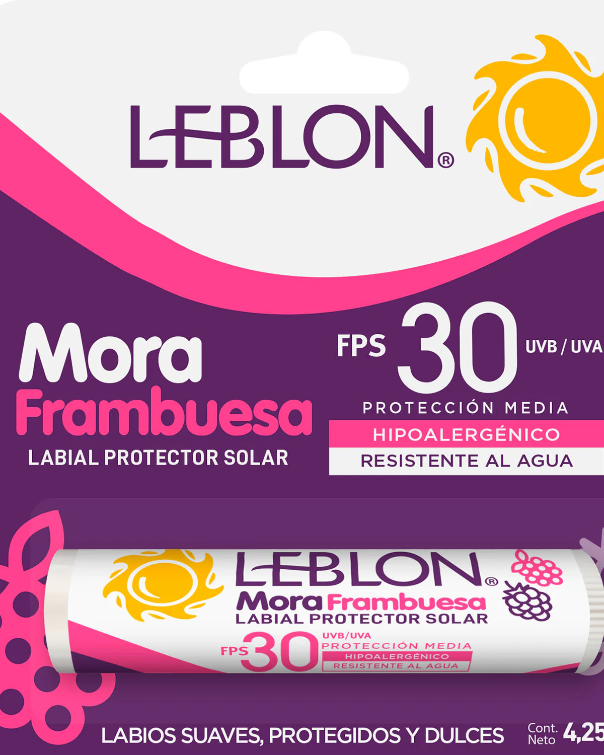 Suavidad, protección y dulzor para los labios. Contenido: 4.25 gr.