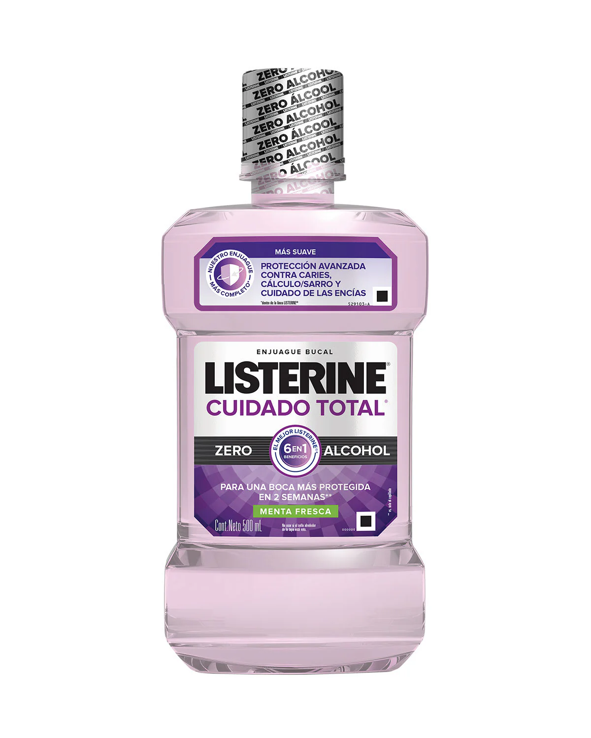 Enjuague bucal libre de alcohol con sabor más suave. Provee una boca más* protegida en 2 semanas.(*vs solo el cepillado).