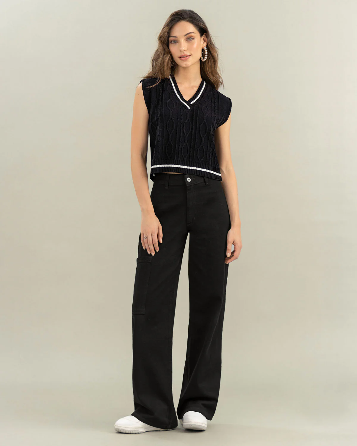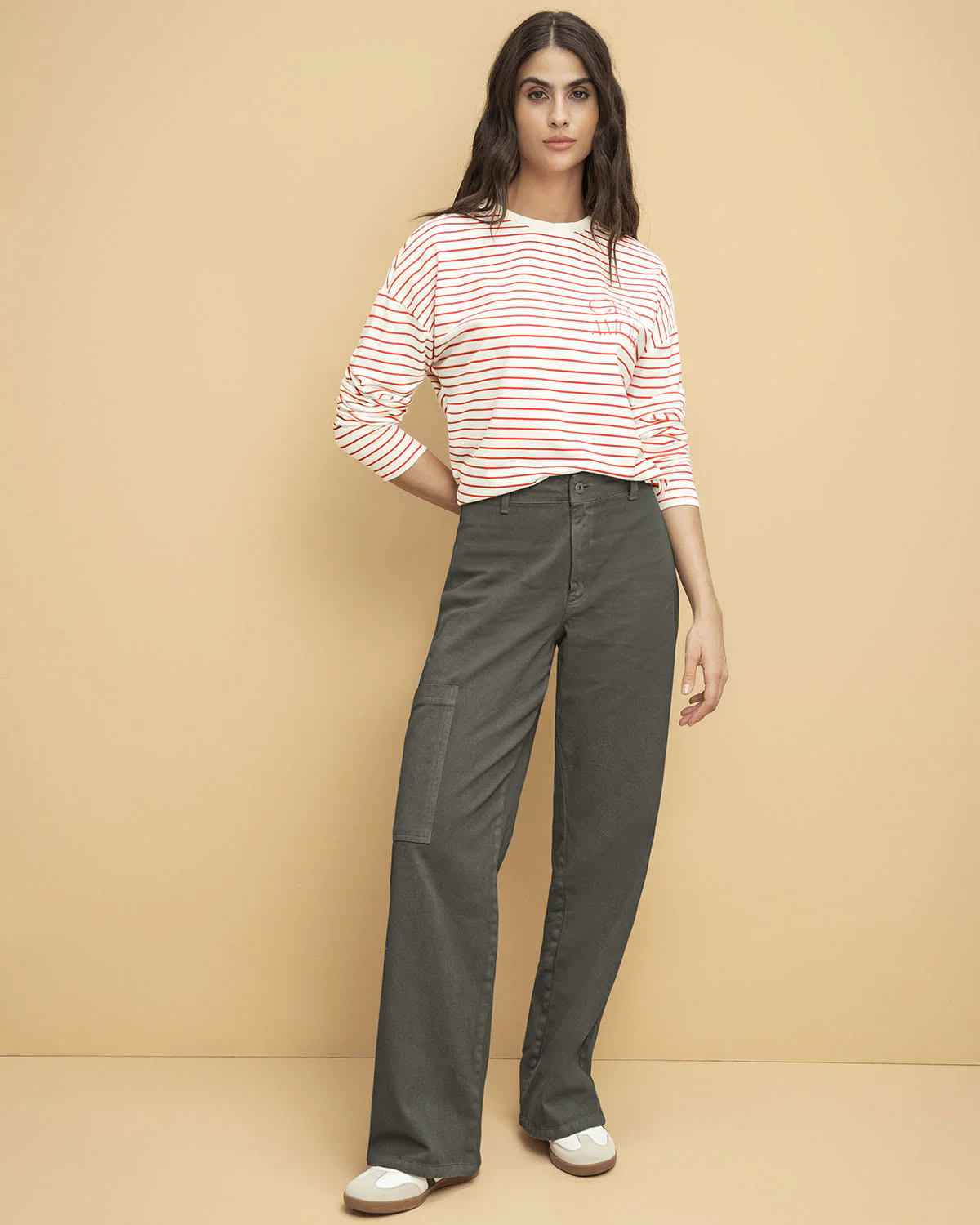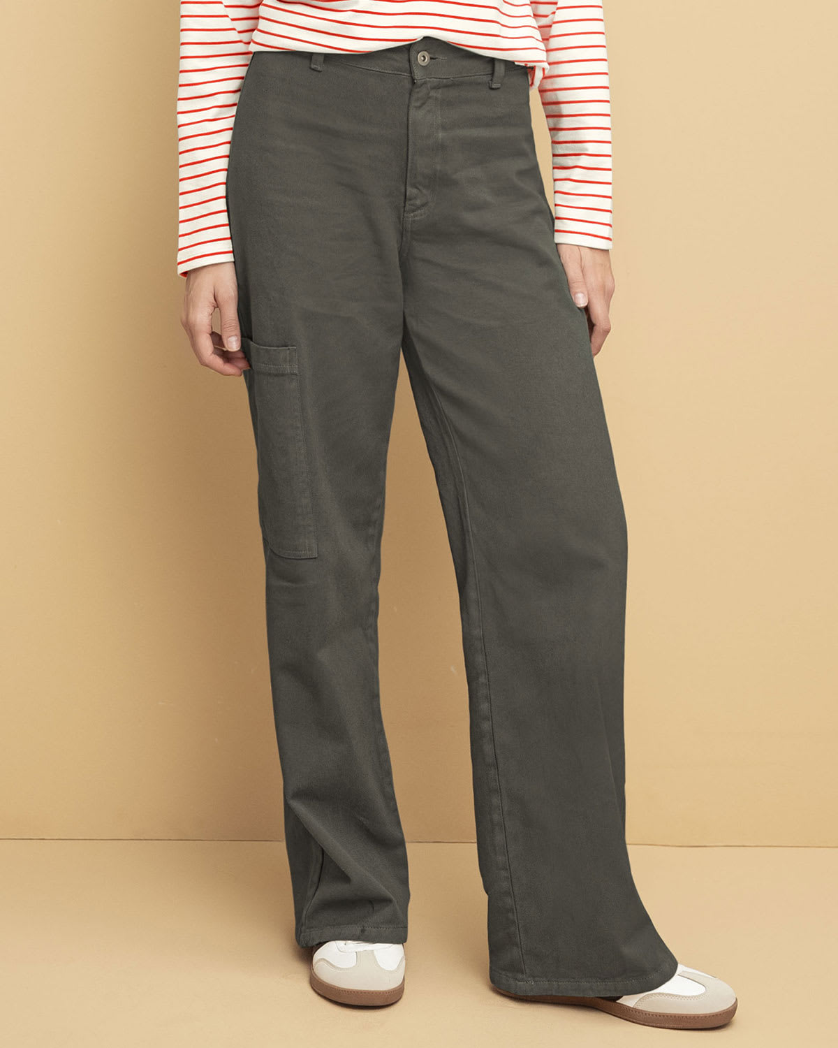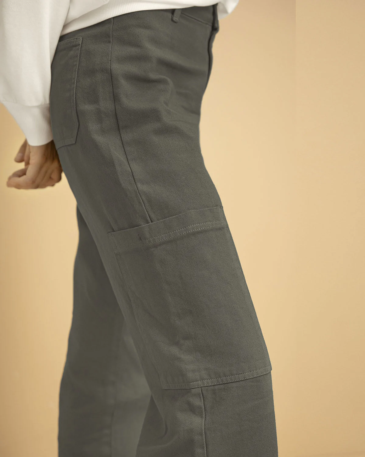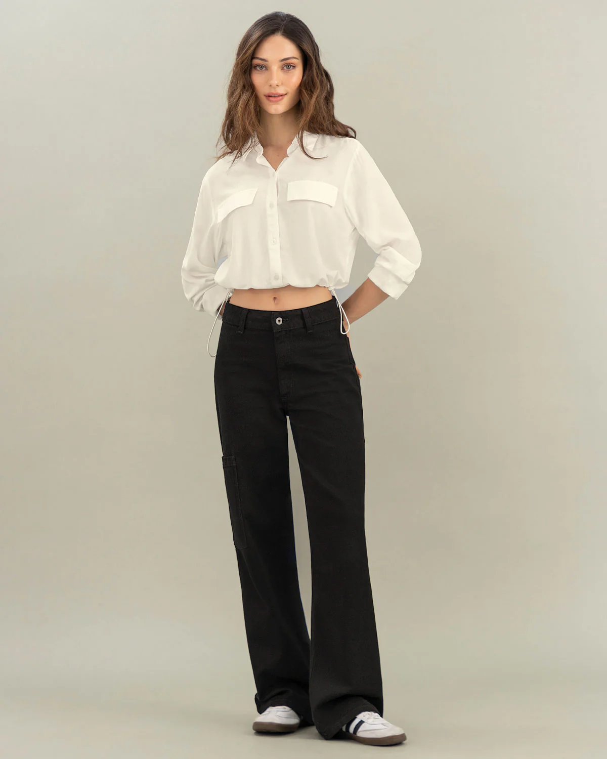 Pantal贸n tiro alto bota recta con bolsillo tipo cargo