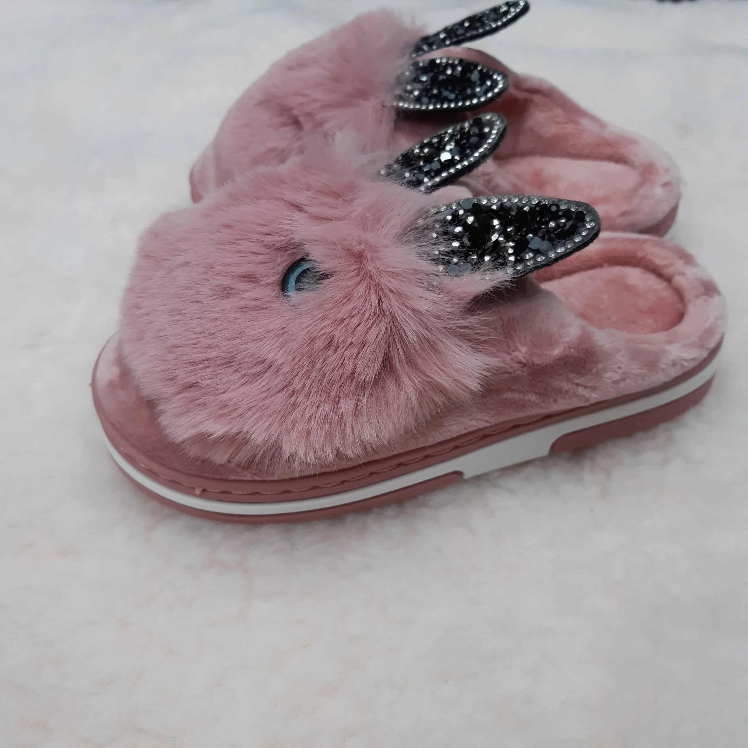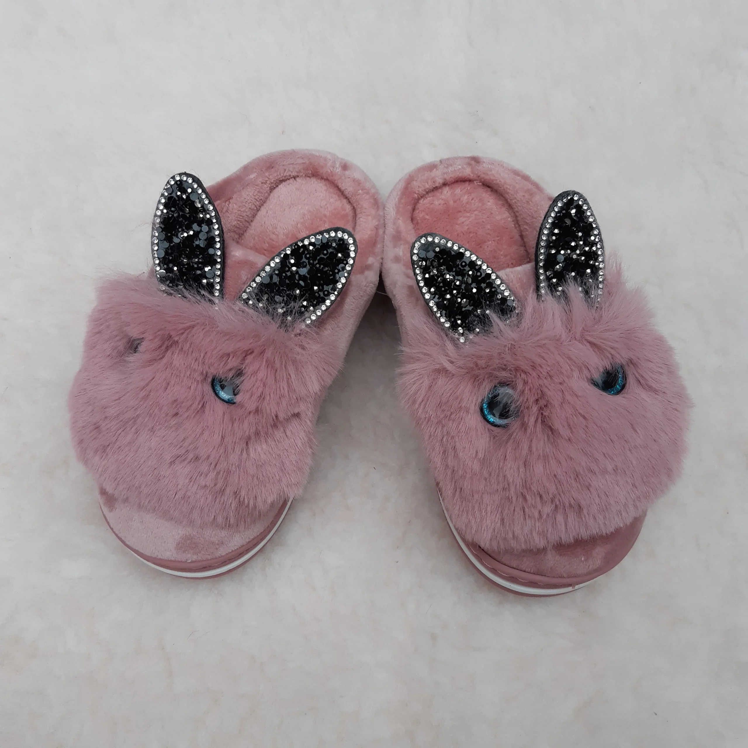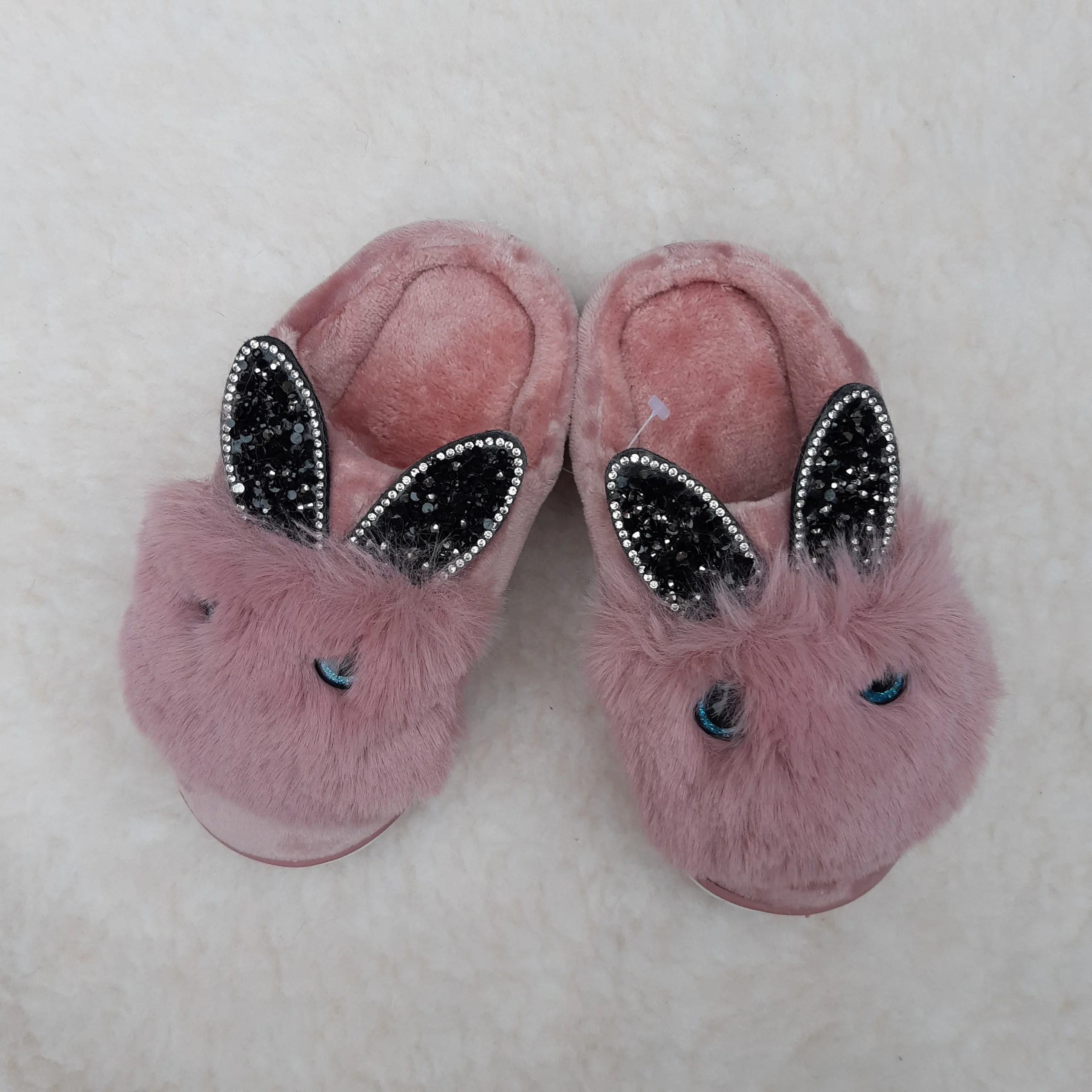 Pantuflas Abrigadas Piel Modelo Orejas Glitter – Rosa Viejo